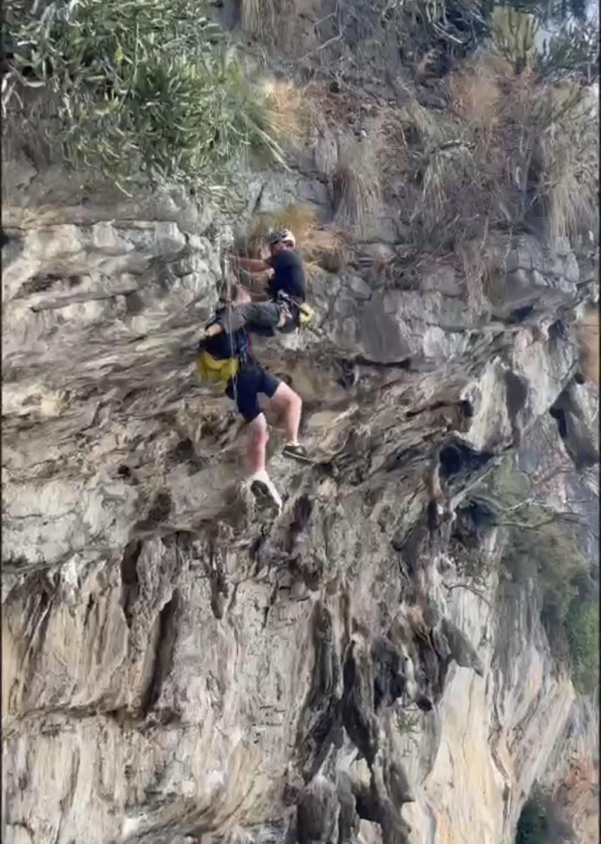 ต่อมาเวลา 16.37 น ได้ช่วยเหลือผู้ประสบเหตุลงมาจากหน้าผาได้สำเร็จ โดยได้รับการสนับสนุนการช่วยเหลือลำเลียงผู้ประสบเหตุจากหน้าผาลงสู่ภาคพื้นดินจากผู้มีประสบการณ์ปีนผา เมื่อการช่วยเหลือผู้ประสบเหตุลงมาถึงภาคพื้นดิน ทีมกู้ชีพกู้ภัยอุทยานแห่งชาติฯ จากการประเมินอาการเบื้องต้น มีแผลถลอกตามร่างกาย และบริเวณขาซ้ายผิดรูป ผู้บาดเจ็บยังคงมีสติดี สามารถโต้ตอบและสื่อสารได้