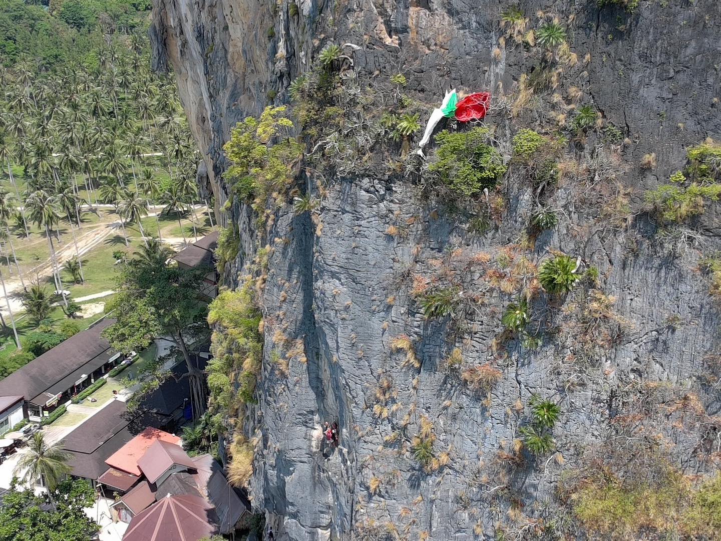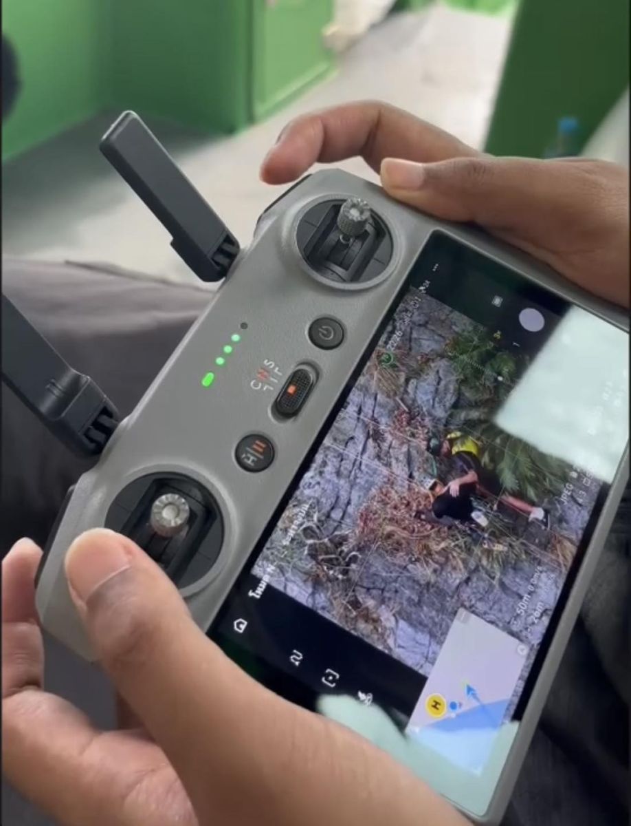 จากการตรวจสอบในเบื้องต้นพบว่าเป็นนักท่องเที่ยวเพศชาย มีร่มติดค้างบริเวณหน้าผาที่ระดับความสูงประมาณ 60-70 เมตร จึงได้ใช้อากาศยานไร้คนขับบินสำรวจจากระยะไกล จากการประเมินเบื้องต้นจากสายตาผ่านจอแสดงผล นักท่องเที่ยวรายดังกล่าวได้บาดเจ็บบริเวณขา ซึ่งผู้ประสบเหตุรายดังกล่าวยังคงมีสติ ยังรู้สึกตัวดี จึงประสาน 1669 หน่วยการแพทย์ฉุกเฉิน และปภ. จังหวัดกระบี่ เพื่อแจ้งเหตุการณ์เบื้องต้น พร้อมทั้งประสานผู้มีความสามารถในการปีนผาในพื้นที่เพื่อเร่งเข้าช่วยเหลือผู้ประสบเหตุ