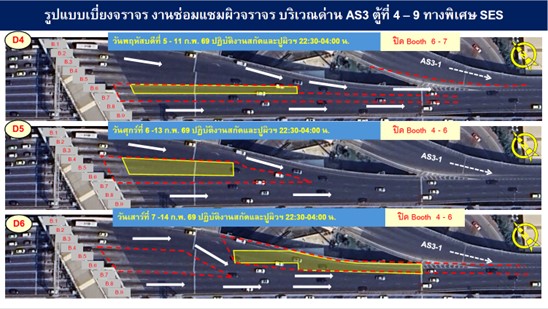 บริษัท ทางด่วนและรถไฟฟ้ากรุงเทพ จำกัด (มหาชน) หรือ BEM ประชาสัมพันธ์แจ้งเบี่ยงการจราจร บริเวณหลังตู้เก็บเงินด่านอโศก 3 ตู้ที่ 4-9 ทางพิเศษศรีรัช เนื่องจากมีความจำเป็นต้องซ่อมแซมผิวจราจร เพื่อความปลอดภัยของผู้ใช้ทาง โดยผู้ใช้ทางยังสามารถสัญจรได้ตามปกติ
