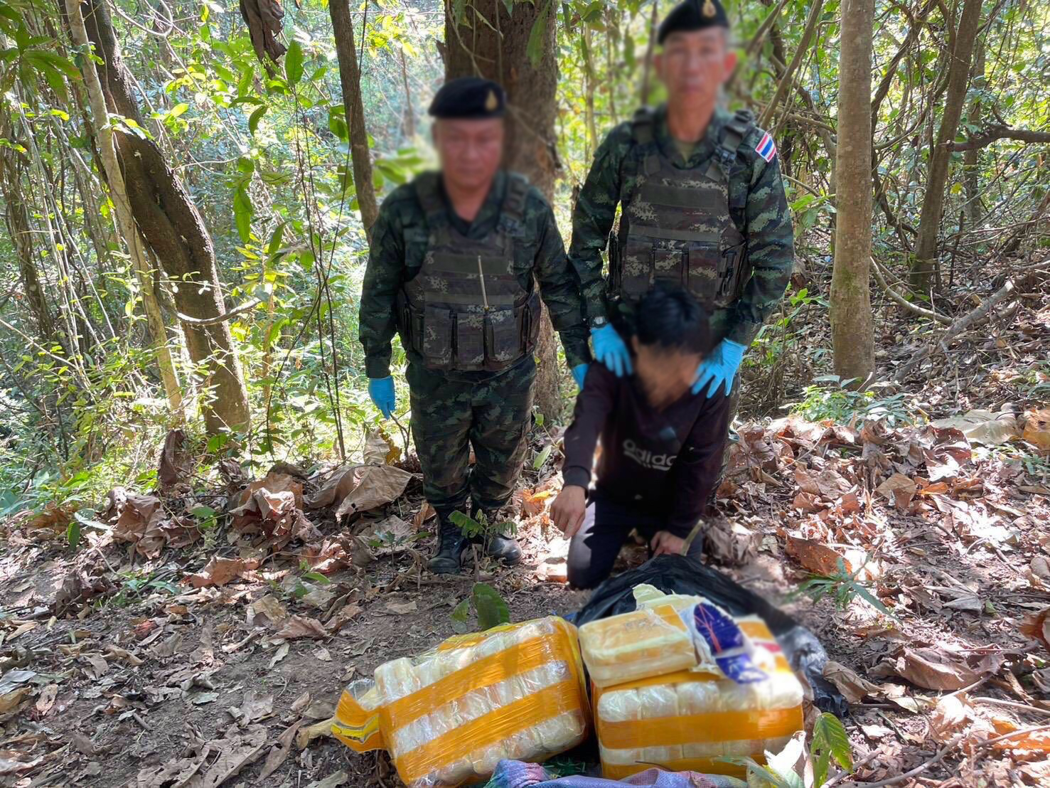 ขณะเดียวกันทางหน่วยได้จัดกำลังพลเพิ่มเติมอีก 2 ชุดปฏิบัติการเพื่อเข้าควบคุมและพิสูจน์ทราบพื้นที่เกิดเหตุ พบกระสอบฟางดัดแปลงจำนวน 30 เป้ ภายในบรรจุยาเสพติดให้โทษประเภทที่ 1 (ยาบ้า) กระสอบละประมาณ 200,000 เม็ด รวมของกลางทั้งสิ้นประมาณ 6,000,000 เม็ด รวมทั้งได้ตรวจพบผู้ต้องสงสัยชาวเมียนมา ในบริเวณพื้นที่เพิ่มเติมอีก 1 ราย โดยสารภาพว่าได้ร่วมกับกลุ่มขบวนการประมาณ 30 คน ลำเลียงยาเสพติดเข้ามาจากบ้านป่าสัก ประเทศเมียนมา และได้รับค่าจ้าง 15,000 บาท ซึ่งเจ้าหน้าที่ได้ควบคุมตัวผู้ต้องสงสัยพร้อมนำของกลางทั้งหมด เตรียมส่งให้เจ้าหน้าที่ตำรวจ เพื่อดำเนินการตามกฎหมายต่อไป
