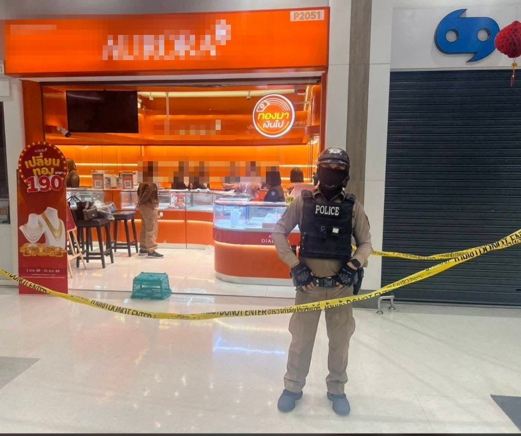 เบื้องต้นทราบว่า คนร้ายเป็นชาย 1 คน แต่งกายสวมเสื้อแขนยาว สีฟ้า นุ่งกางเกงขายาว ใส่หมวกแก๊ป ใช้อาวุธปืนก่อเหตุชิงทรัพย์ร้านทอง ได้ทรัพย์สินเป็นทองคำน้ำหนักรวม 149 บาท และเงินสดประมาณ 170,000 บาท หลังก่อเหตุหลบหนีไม่ทราบเส้นทาง