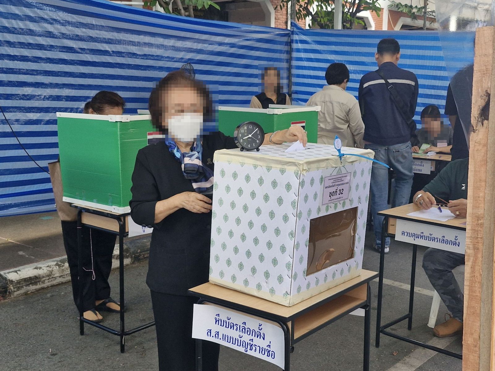 สำหรับคนเเรกที่เข้าคูหาเลือกตั้ง ล่วงหน้านอกเขตเลือกตั้ง ภาคใต้ ชุดที่ 32 เขตเลือกตั้งที่ 1-3 สุราษฎร์ธานี คือ รศ.ดร.พิสมัย จารุจิตติพันธ์ ผู้อำนวยการ หลักสูตรปรัชญาดุษฎีบัณฑิต สาขาการจัดการ มหาวิทยาลัยนอร์ทกรุงเทพ “ได้ลงทะเบียน เลือกตั้งล่วงหน้านอกเขตไว้ กล่าวว่า ”เช้านี้รีบมา ใช้สิทธิ์เลือกตั้งก่อนไปทํางานต่อ ขอเชิญชวน ทุกท่านนะคะ ทั้งที่อยู่ในเขตและนอกเขตเลือกตั้งนะคะ ไปลงคะแนนเสียง เพื่อเลือก สมาชิกสภาผู้แทนราษฎร ทั้งแบ่งเขต แล้วก็บัญชีรายชื่อนะคะ เพราะว่าการลงคะแนนเสียงเลือกตั้ง เป็นกิจกรรมที่มีความสำคัญอย่างมาก ในการที่อยู่ในระบบประชาธิปไตย ก็เชิญชวนทุกท่านมาใช้สิทธิ์เลือกตั้งนะคะ"