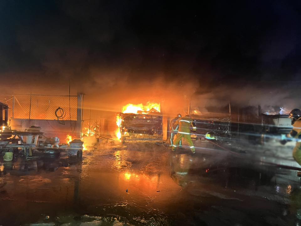 ที่เกิดเหตุ พบรถบรรทุก ถูกไฟลุกไหม้อย่างรุนแรง เปลวเพลิงโหมลุกลามภายในโรงจอดรถ ทางเจ้าหน้าที่ดับเพลิงระดมกำลังใช้น้ำเร่งสกัด ไม่ให้ไฟลุกลามไปยังบ้านเรือนใกล้เคียง โดยมีรถดับเพลิงจาก ทต.ยางเนิ้ง, ทต.หนองผึ้ง ทต.ไชยสถาน และเจ้าหน้าที่จากหลายหน่วยงาน เข้าควบคุมสถานการณ์ จนเพลิงสงบลงในเวลาต่อมา
