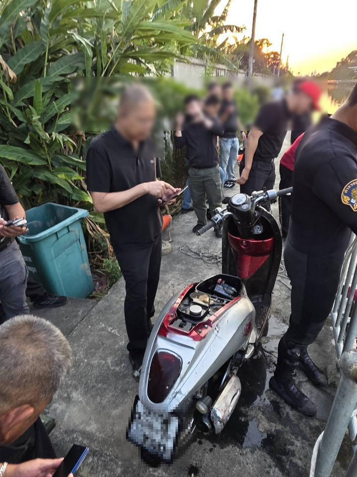 โดยรถจักรยานยนต์คันดังกล่าวถูกพบถูกทิ้งอยู่ภายใน คลองประเวศฯ เบื้องต้นเป็นรถจักรยานยนต์ ยี่ห้อฮอนด้า ทะเบียน ลพบุรี