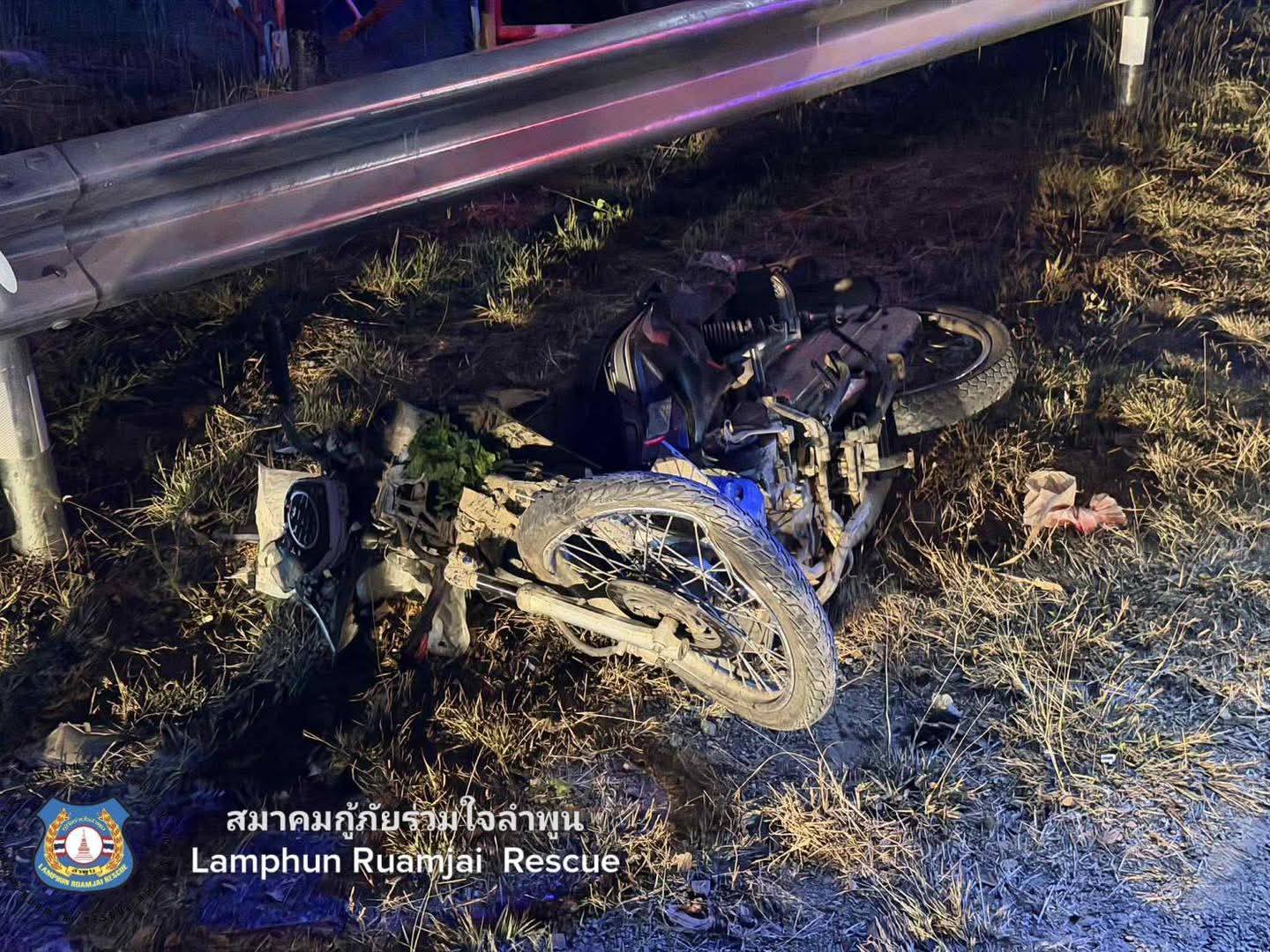 รถจักรยานยนต์ชนกับรถกระบะ ใกล้ทางสี่แยก มีผู้เสียชีวิตทั้งผู้ใหญ่และเด็กเล็กรวม 4 ราย จ.ลำพูน