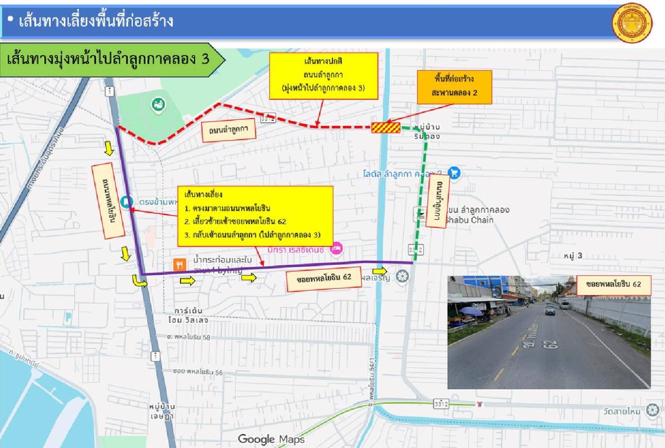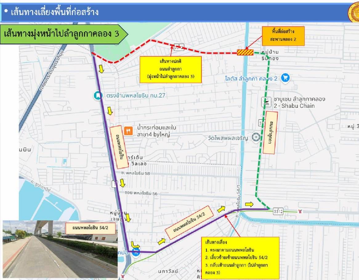 จุดที่ 2 กม.6+467 สะพานข้ามคลอง 3 จะดำเนินการปิดเบี่ยงจราจรและปฎิบัติงานในช่วงเวลา 21.00-04.00 น. โดยจะมีการปิดจุดกลับรถปั๊มบางจาก ตลอด 24 ชม. แล้วให้ไปใช้จุดกลับรถปั๊ม ปตท.เก่า ทดแทน จึงขอประชาสัมพันธ์ผู้ใช้เส้นทางสัญจรให้หลีกเลี่ยงบริเวณดังกล่าว