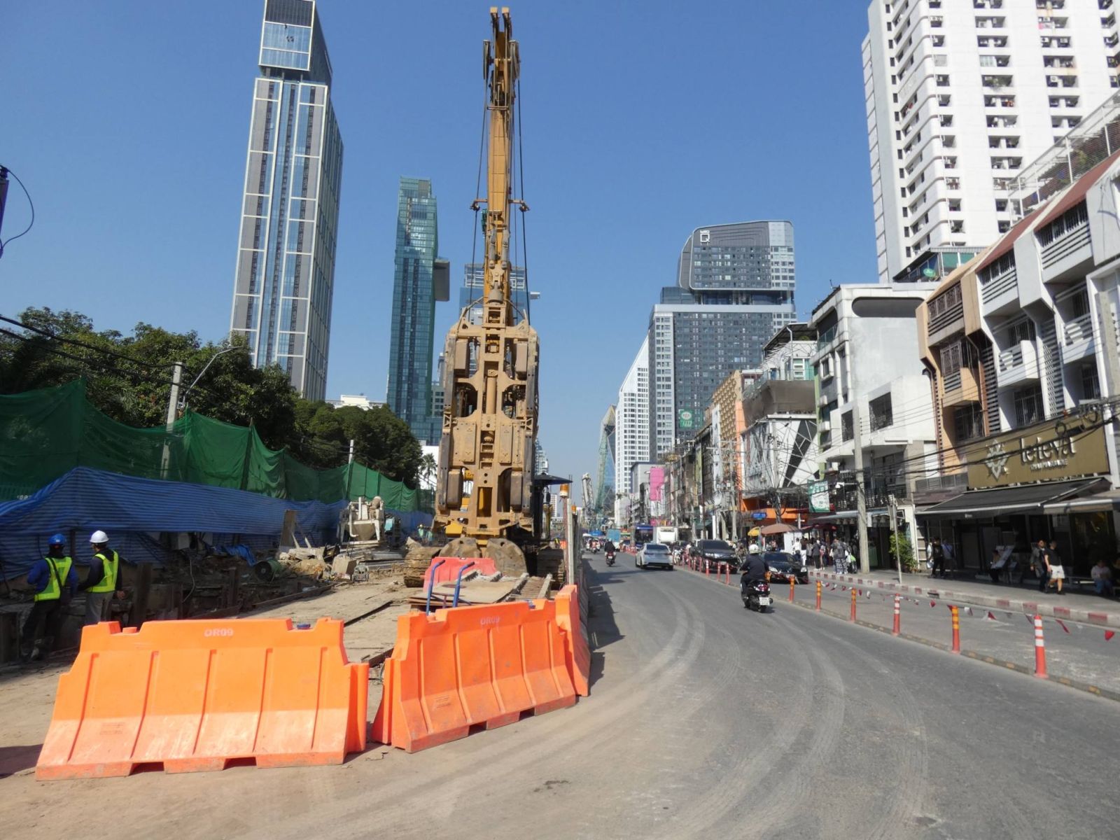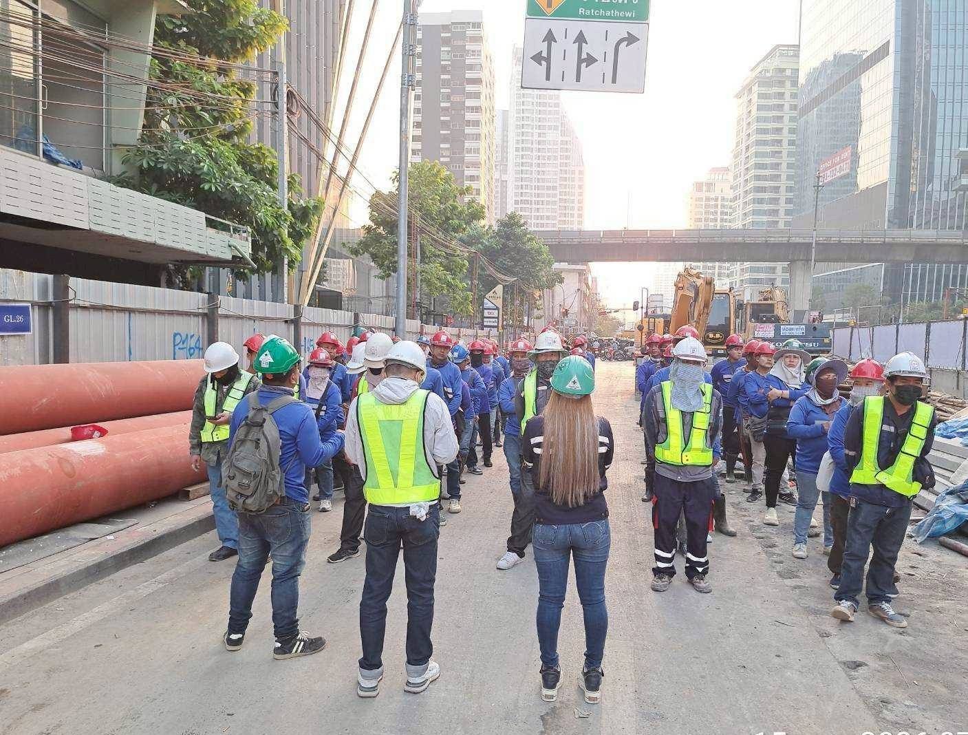 การรถไฟฟ้าขนส่งมวลชนแห่งประเทศไทย (รฟม.) โดยสำนักงานความปลอดภัย อาชีวอนามัยและสภาพแวดล้อมในการทำงาน (สปอ.) ลงพื้นที่ตรวจสอบการดำเนินงานด้านความปลอดภัยในการก่อสร้าง โครงการรถไฟฟ้าสายสีส้ม ช่วงบางขุนนนท์ – ศูนย์วัฒนธรรมแห่งประเทศไทย ช่วงเวลากลางวัน (Day Audit) โดยลงพื้นที่บริเวณสถานีราชเทวี สถานีประตูน้ำ และสถานีราชปรารภ โดยได้ตรวจสอบอุปกรณ์ต่างๆ ให้มีความสมบูรณ์และพร้อมใช้งาน รวมทั้งจัดเก็บวัสดุอุปกรณ์การก่อสร้างให้เรียบร้อย การวางแบริเออร์ตามแนวเขตก่อสร้างให้เป็นระเบียบ โดยแนวแบริเออร์จะต้องอยู่ภายในเขตพื้นที่ที่กำหนดเพื่อไม่ให้ล้ำเข้าพื้นผิวจราจร ซึ่งเป็นการป้องกันอุบัติเหตุที่อาจเกิดขึ้นจากการใช้ถนนในบริเวณดังกล่าว การติดตั้งแผงผ้าใบ ไฟส่องสว่าง ไฟสัญญาณเตือน และยึดติดป้ายเตือนให้มีความมั่นคงแข็งแรง อยู่ในตำแหน่งที่ปลอดภัย สามารถเห็นได้อย่างชัดเจน พร้อมกำชับให้เจ้าหน้าที่ทุกคนสวมใส่อุปกรณ์คุ้มครองความปลอดภัยส่วนบุคคลให้ครบถ้วนตลอดระยะเวลาที่ปฏิบัติงาน และปฏิบัติตามมาตรฐานความปลอดภัยที่กำหนดอย่างเคร่งครัด เพื่อป้องกันอุบัติเหตุที่ไม่พึงประสงค์