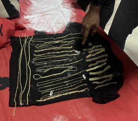 ขณะเจ้าหน้าที่แสดงตัวเข้าตรวจสอบ ผู้ต้องสงสัยมีพฤติการณ์พยายามหลบหนี เจ้าหน้าที่จึงเข้าควบคุมตัวไว้ได้โดยทันที จากการสอบสวน ผู้ต้องสงสัยให้การรับสารภาพและเปิดเผยสถานที่ซุกซ่อนทองคำของกลาง ซึ่งอยู่ที่บ้านเพื่อนในจังหวัดสงขลา เจ้าหน้าที่จึงเข้าตรวจสอบและพบทองคำรูปพรรณซุกซ่อนอยู่ภายในบ้านดังกล่าว จำนวนกว่า 30 เส้น จึงตรวจยึดไว้เป็นของกลาง และอยู่ระหว่างดำเนินการตามขั้นตอนของกฎหมายต่อไป