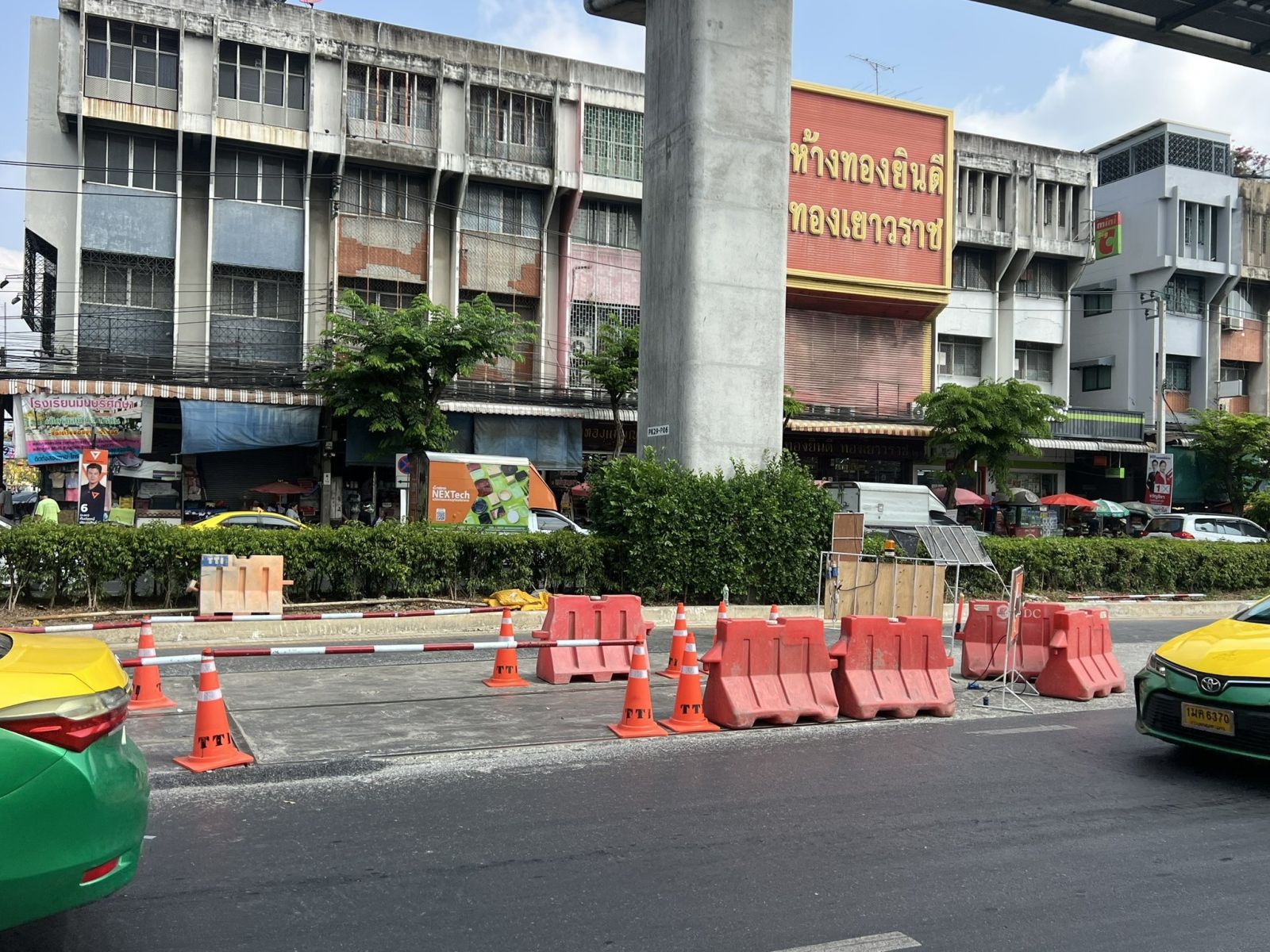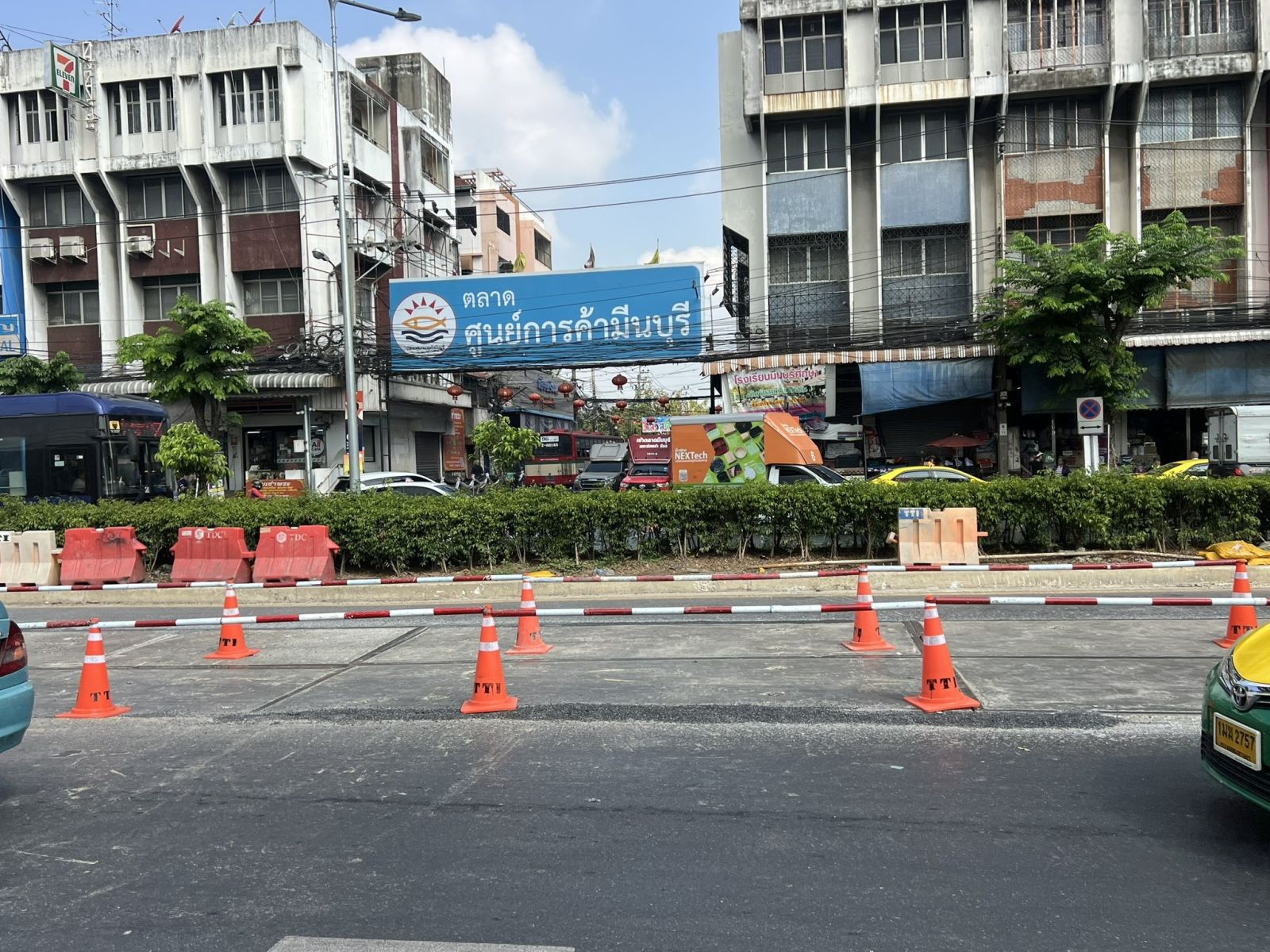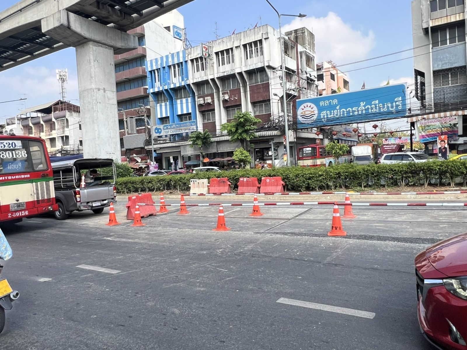 MEA แจ้งกั้นพื้นที่จราจรชั่วคราว บริเวณหน้าตลาดมีนบุรี ถ.สีหบุรานุกิจ เพื่อซ่อมแซมฝาบ่อพักชั่วคราวป้องกันการทรุดตัว โครงรถไฟฟ้าสายสีชมพูเฟส2 โดย บมจ.ซิโน-ไทยฯ