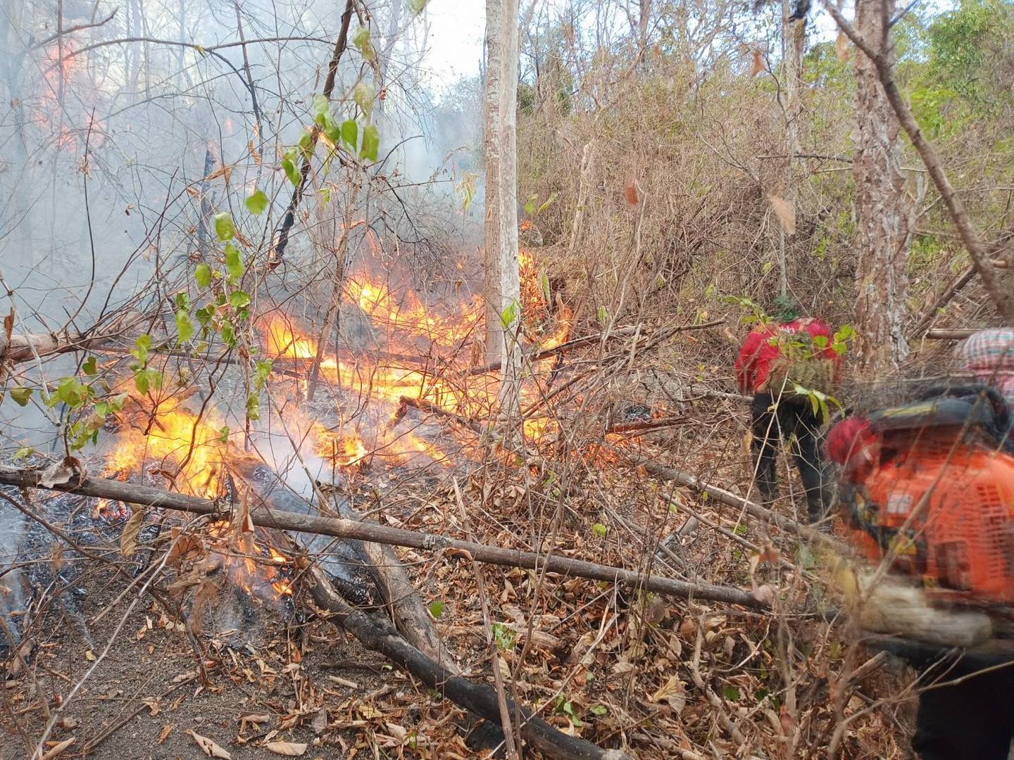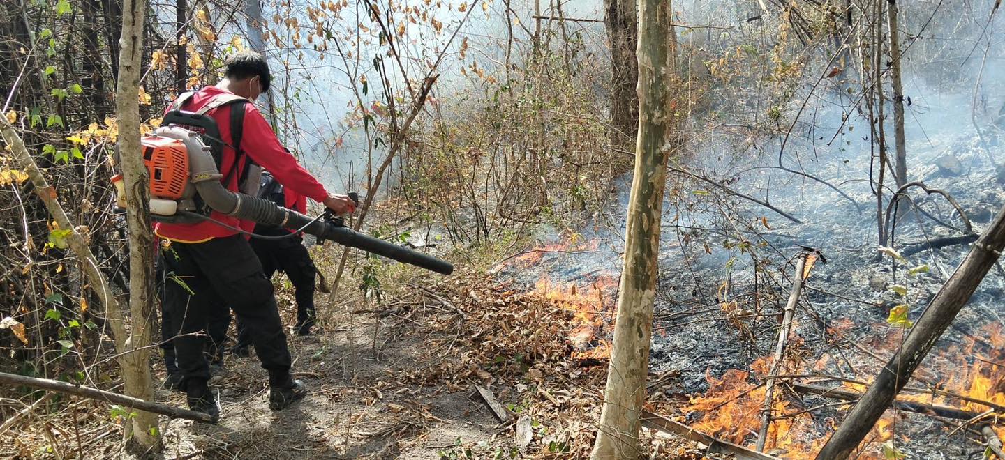 จนท.สกัดไฟป่าห้วยยาง สนธิกำลังดับไฟป่าดิบแล้งเผาวอด 45 ไร่ คาดสาเหตุจากความประมาท