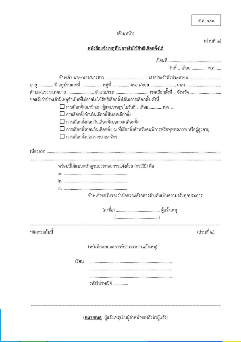 ผู้มีสิทธิออกเสียงสามารถแจ้งเหตุที่ไม่อาจไปใช้สิทธิออกเสียงได้