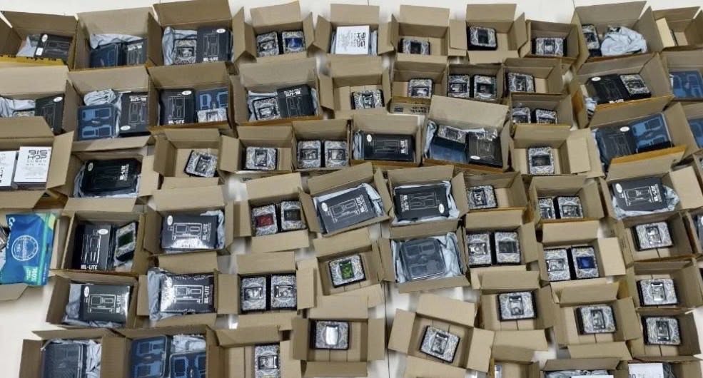 ผลการตรวจพบ “เครื่องบุหรี่ไฟฟ้า อุปกรณ์บุหรี่ไฟฟ้าและชิ้นส่วนบุหรี่ไฟฟ้า” แหล่งกำเนิดต่างประเทศ จำนวน 214 ชิ้น มูลค่ากว่า 275,300 บาท