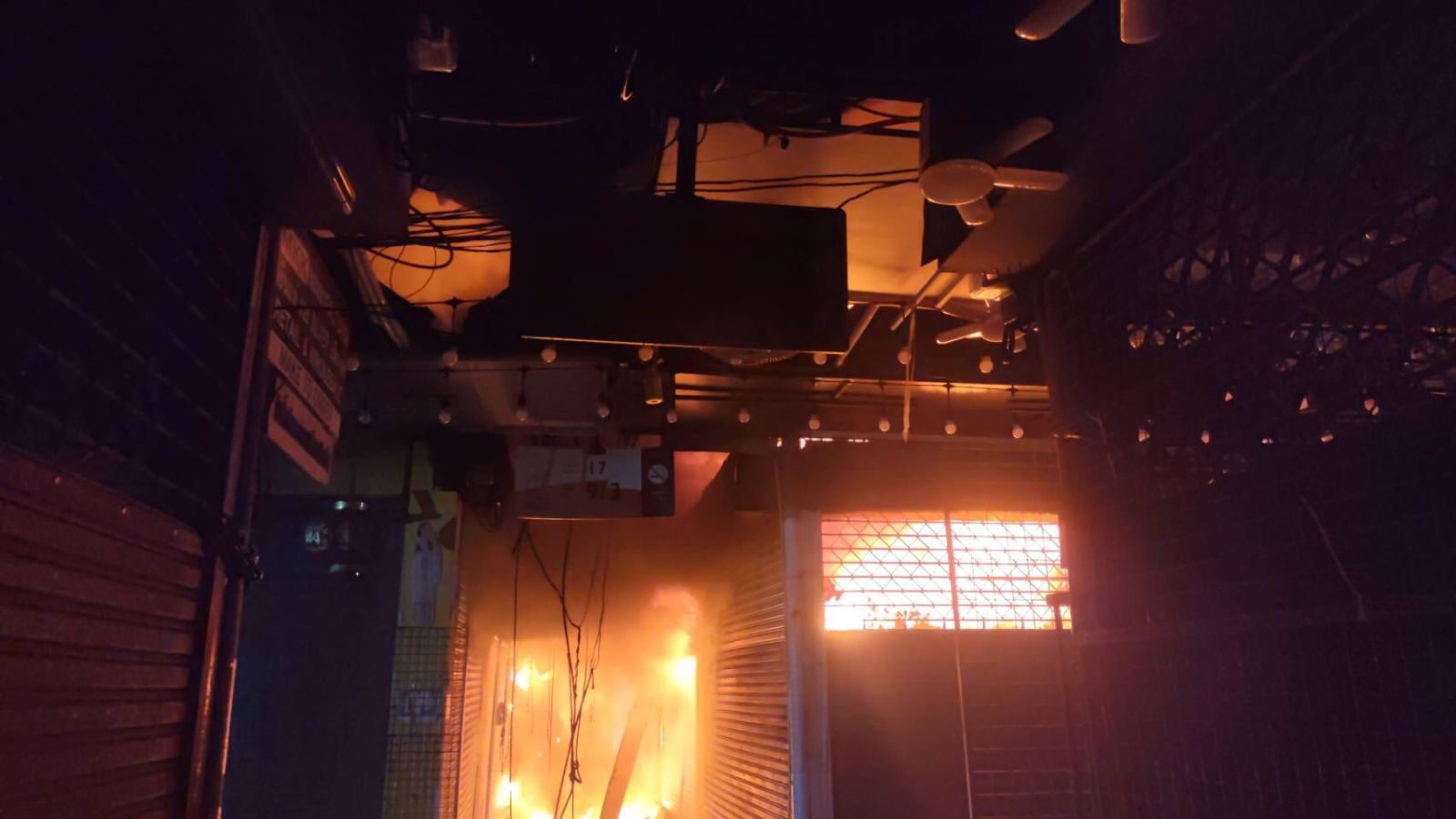 เวลา 23.06 น. ขณะนี้สามารถควบคุมเพลิงได้ ลักษณะที่เกิดเหตุเป็นร้านค้าจำหน่ายเสื้อผ้า เบื้องต้นเพลิงลุกไหม้เสียหายประมาณ 8 ห้อง
