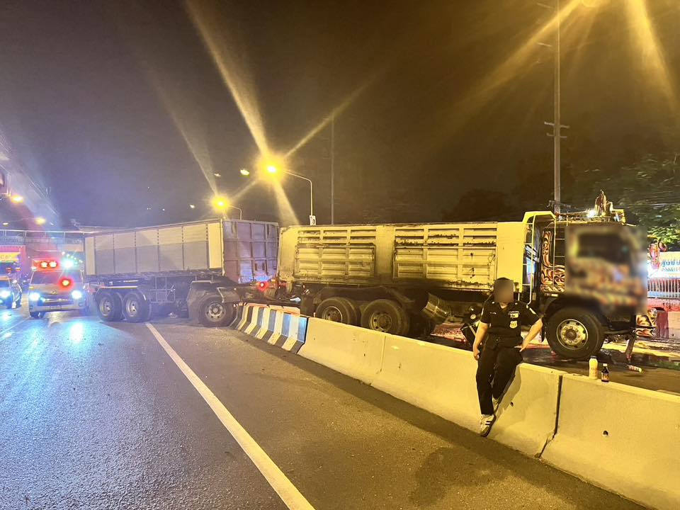เวลา 01.20 น. วันที่ 10 กุมภาพันธ์ 2569 รับแจ้งว่า ถนนวิภาวดีรังสิต ขาเข้า หน้าทางเข้า ศูนย์ฝึก รด. มีอุบัติหตุ รถบรรทุกชนขอบทาง กีดขวางในช่องทางด่วน