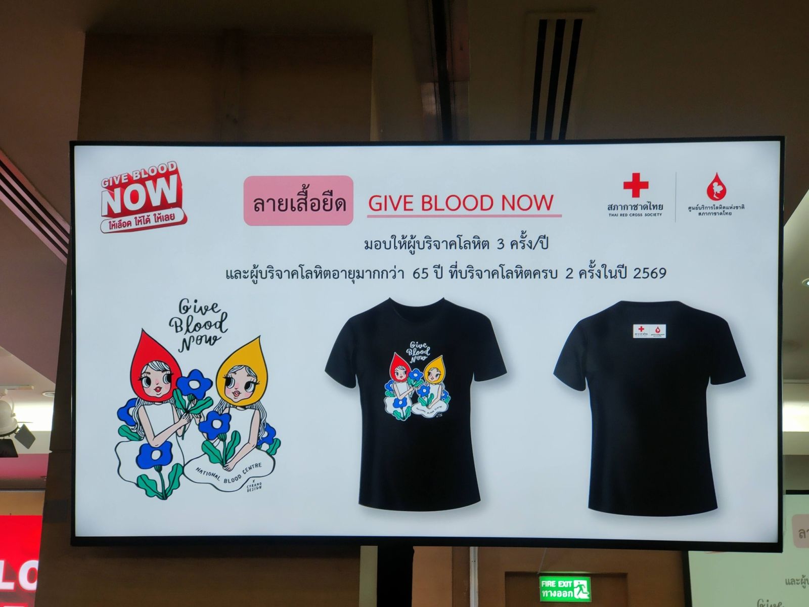 พิเศษ ! สำหรับผู้บริจาคโลหิตครบ 3 ครั้ง และผู้บริจาคโลหิตที่อายุมากกว่า 65 ปี บริจาคโลหิตครบ 2 ครั้ง ในปี 2569 จะได้รับเสื้อยืด Give Blood Now ลายเส้น Cyrano Design (ไซราโน ดีไชน์) เป็นที่ระลึก