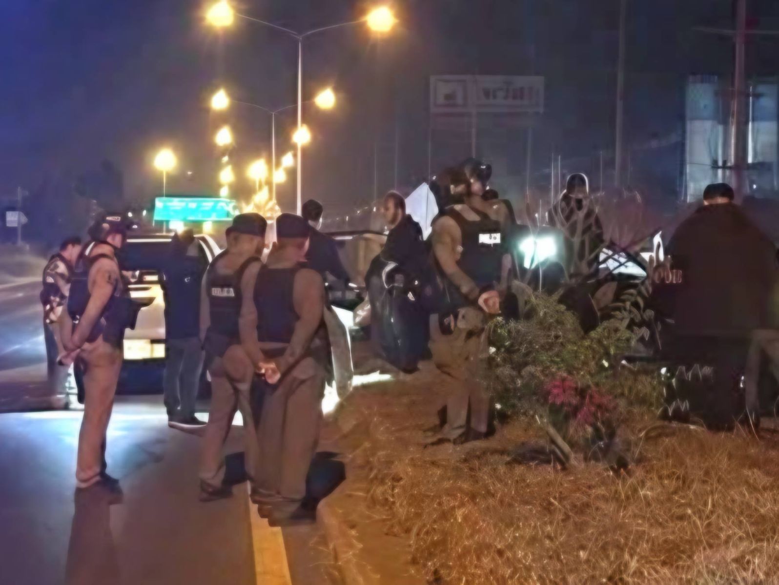 ในที่เกิดเหตุพบรถกระบะสีขาว ทะเบียน กรุงเทพมหานคร สภาพด้านหน้าพังยับเยินจากการพุ่งชนเสาไฟฟ้าจนหักโค่น ตรวจสอบภายในรถและบริเวณโดยรอบพบห่อของกลางยาเสพติด (ยาบ้า) บรรจุอยู่ในกระสอบจำนวนมาก นับรวมได้ประมาณ 1,200,000 เม็ด นอกจากนี้ยังมีรถยนต์ของประชาชนและเจ้าหน้าที่ได้รับความเสียหายอีก 2 คัน เนื่องจากผู้ต้องหาได้โปรยตะปูเรือใบลงบนพื้นถนนตลอดเส้นทางเพื่อหวังหลบหนีการจับกุม