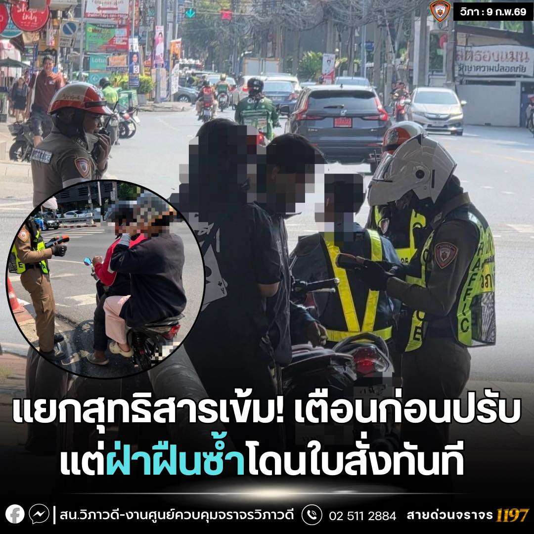 2. เจ้าหน้าที่ตำรวจจราจรจะดำเนินการว่ากล่าวตักเตือนก่อนออกใบสั่ง เฉพาะกับผู้กระทำผิดกฎหมายจราจรที่ “ไม่มีข้อมูลค้างชำระใบสั่ง” หากพบว่าเป็นผู้ที่ค้างชำระใบสั่งจะไม่ได้รับการว่ากล่าวตักเตือนก่อนออกใบสั่ง
