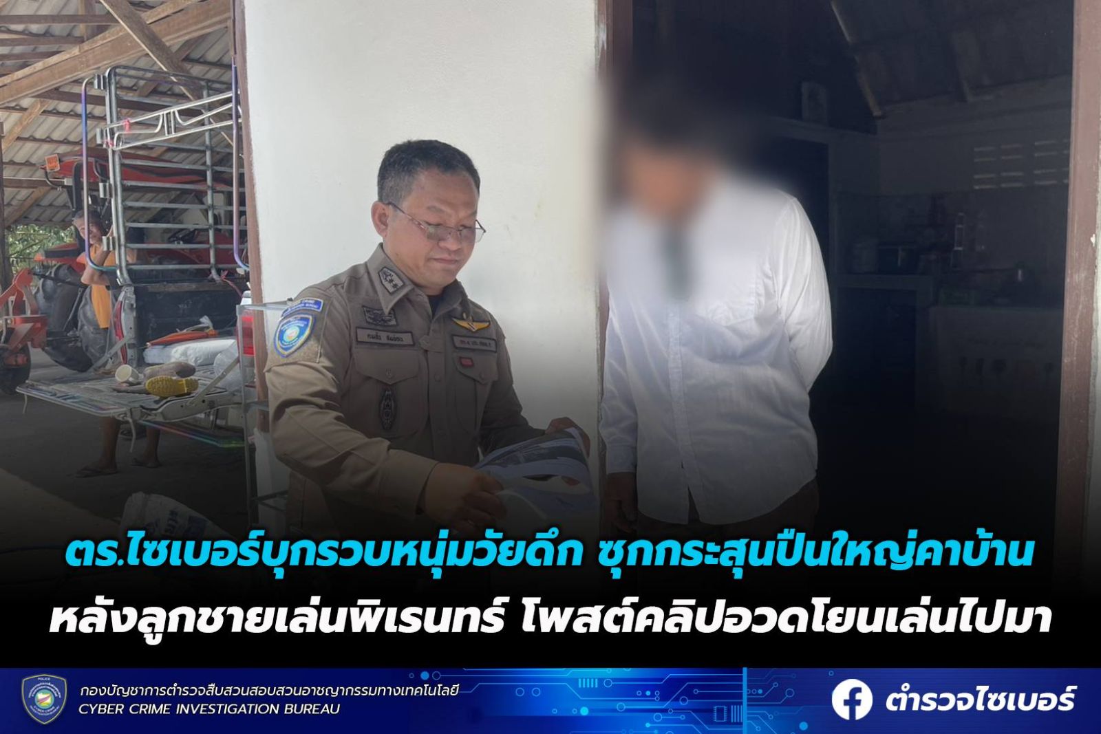 สืบเนื่องจากเจ้าหน้าที่ตำรวจชุด Cyber Guard กก.4 บก.สอท.5 ได้ตรวจสอบพบบัญชีเฟซบุ๊กรายหนึ่ง ได้โพสต์คลิปวิดิโอขณะกลุ่มวัยรุ่นชายกำลังเอาหัวกระสุนปืนใหญ่มาโยนเล่นหยอกล้อกันอย่างสนุกสนาน พร้อมติดแฮชแท็ก #ไทยนี้รักสงบแต่ถึงรบไม่ขลาด โดยมีประชาชนในโซเชียลที่พบเห็นคลิปดังกล่าวได้พยายามคอมเมนต์ตักเตือนถึงอันตราย และชาวโซเชียลยังได้พยายามช่วยกันแท็กเฟซบุ๊กของสถานีตำรวจพื้นที่ รวมทั้งเฟซบุ๊กของสำนักงานตำรวจแห่งชาติให้ช่วยตรวจสอบ เจ้าหน้าที่ตำรวจจึงได้ลงพื้นที่สืบสวนสอบสวน กระทั่งสามารถรวบรวมพยานหลักฐานเพื่อขออนุมัติหมานค้นจากศาลเข้าตรวจค้นได้สำเร็จ