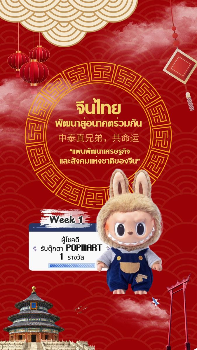 คำถามสัปดาห์แรก เริ่มแล้ว วันนี้! เข้าไปร่วมสนุกตอบคำถาม และคอมเมนต์ พร้อมติด #จีนไทยพัฒนาสู่อนาคตร่วมกัน แล้วรอประกาศผลผู้โชคดีได้เลย!