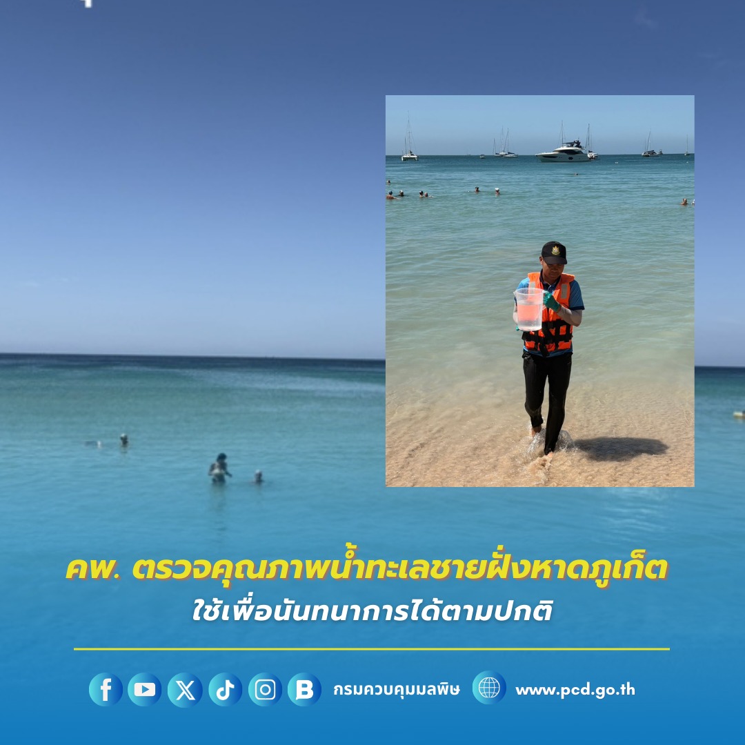 ผลการตรวจสอบคุณภาพน้ำทะเลชายฝั่ง ครั้งที่ 2 วันที่ 10 กุมภาพันธ์ 2569 จำนวน 5 หาด (ติดตามตรวจสอบเพิ่มขึ้นใหม่ 3 หาด ได้แก่ หาดกะตะน้อย หาดกะตะใหญ่ และหาดกะรน จากเดิม 2 หาด ได้แก่ หาดราไวย์ หาดในหาน)