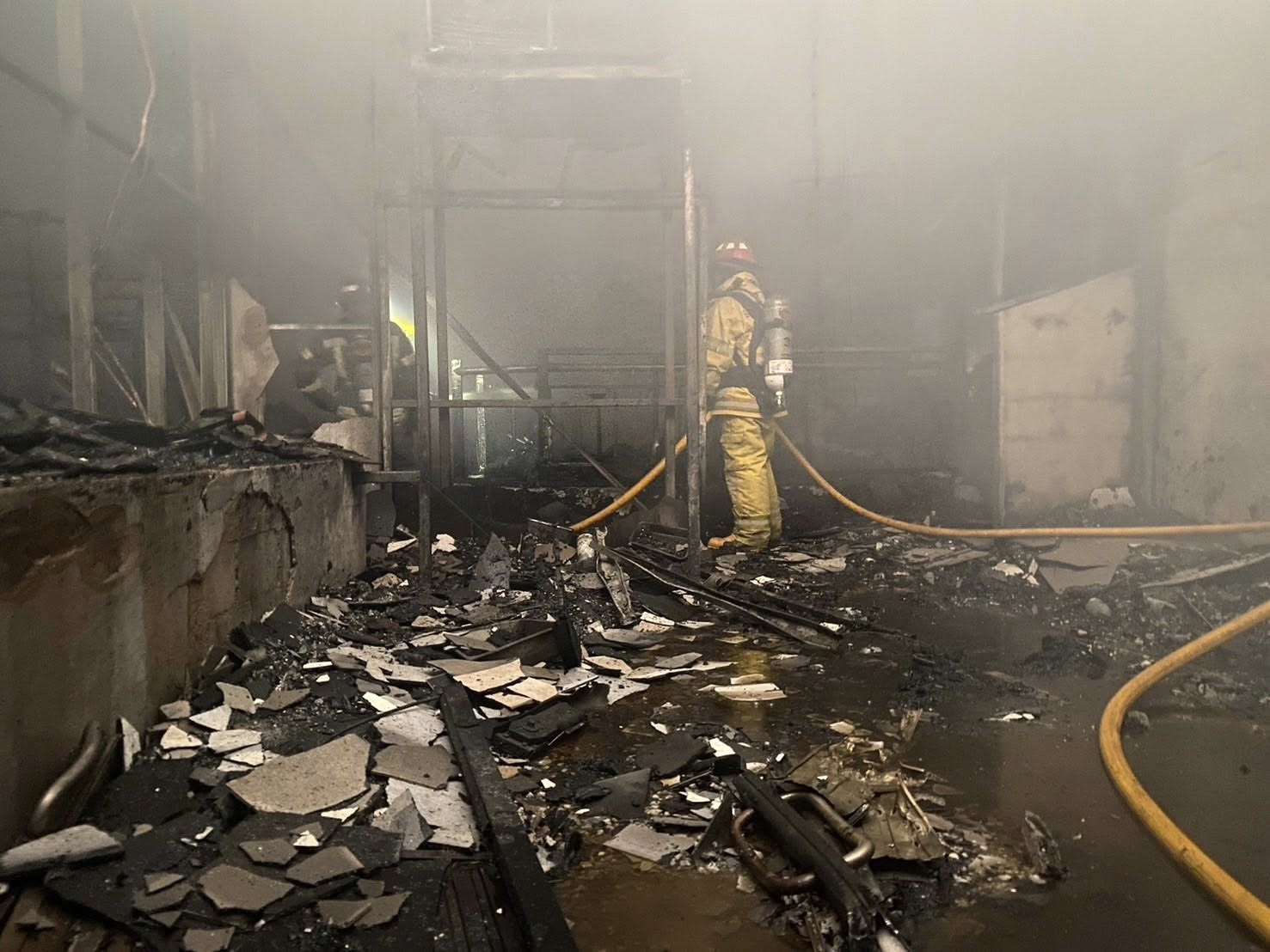 เวลา 16:00 น. เพลิงลุกไหม้อยู่ภายในตัวร้าน ขณะนี้ใช้น้ำเริ่มเป็นผล แสงเพลิงเริ่มลดลงตามลำดับ เพลิงใกล้สงบ