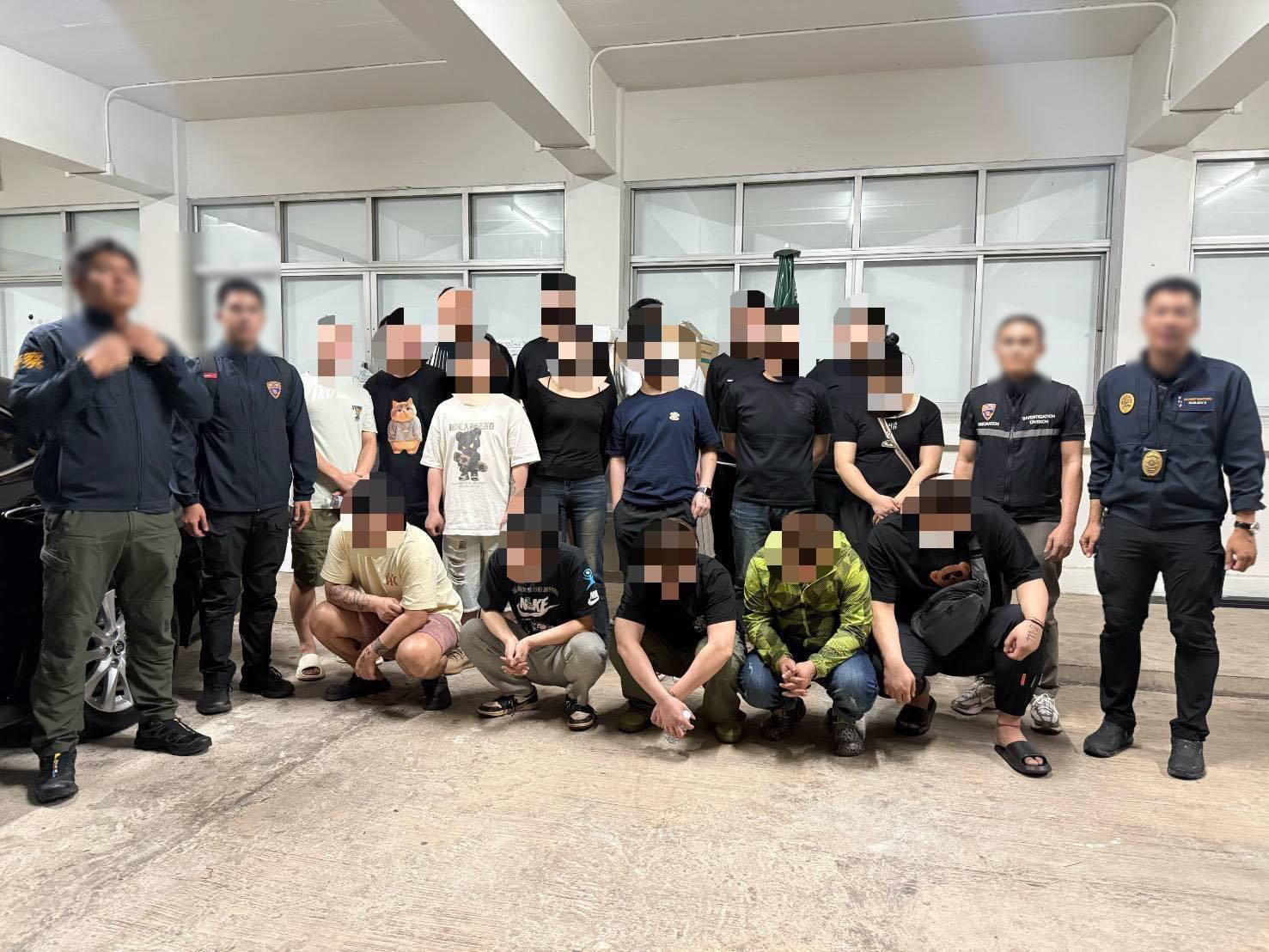 ชุดสืบ สตม.ได้รับรายงานจากสายข่าว ว่ามีกลุ่มคนจีนเข้าพักอาศัยที่โรงแรมดังกล่าวผิดปกติ จึงมีการเข้าตรวจสอบ และนำกำลังเข้าตรวจค้น พบผู้ต้องหาทั้ง 17 คน พักรวมกัน โดยพบว่า ได้ลักลอบเข้าไทยทางช่องทางธรรมชาติ ในเขตพื้นที่ จว.สระแก้ว โดยในชั้นจับกุมยังไม่ยอมบอกว่า เข้าไทยด้วยวัตถุประสงค์ใด แต่คาดว่า เป็นกลุ่มสแกมเมอร์ชาวจีนที่หลบหนีการถูกกดดันเข้าไทย ซึ่ง ผบช.สตม.สั่งให้ บก.สส.สตม.ขยายผล ถึงเส้นทางและขบวนการที่ให้การช่วยเหลือนำพา ต่อไป