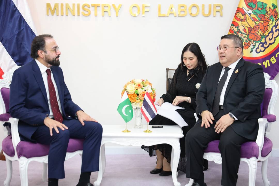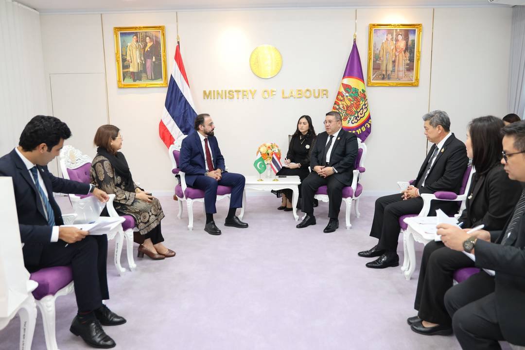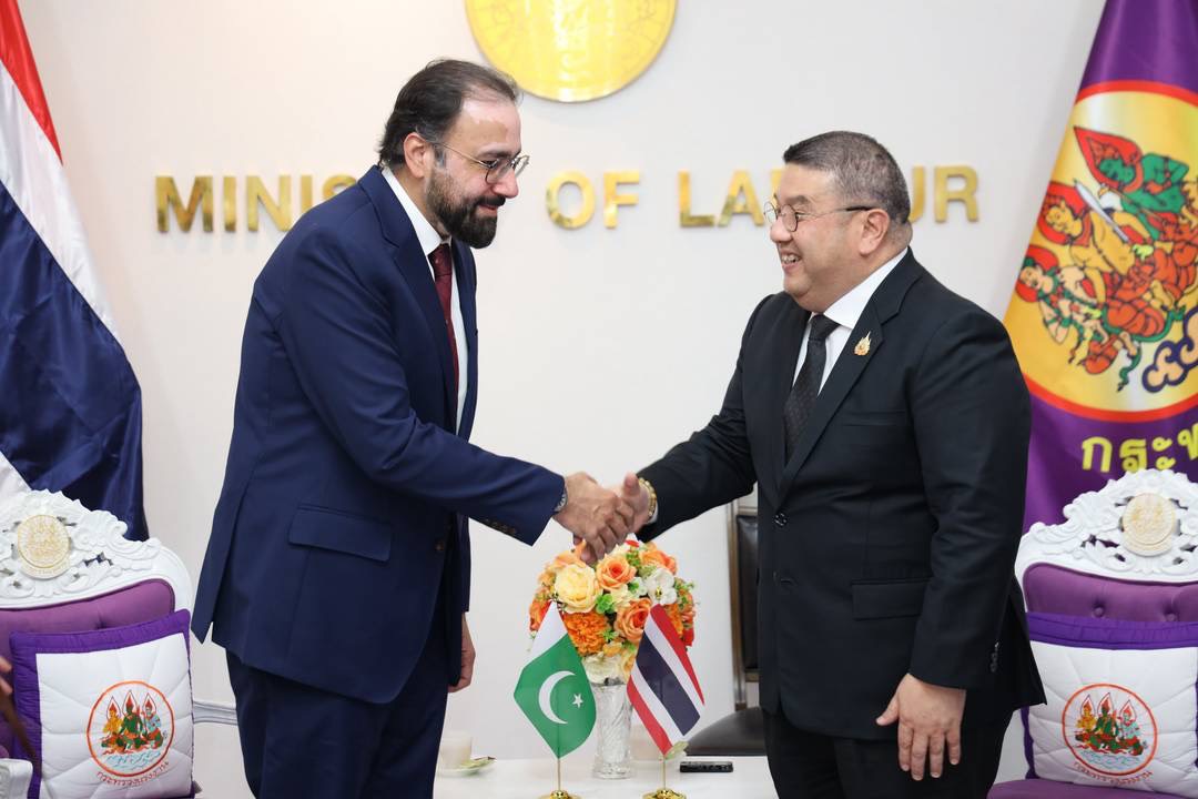 วันที่ 11 กุมภาพันธ์ 2569 เวลา 15.00 น. พันตำรวจโท วรรณพงษ์ คชรักษ์ ปลัดกระทรวงแรงงาน ให้การต้อนรับ นายเชาว์ดรี ซาลิก ฮุสเซน (Mr. Chaudhry Salik Hussain) รัฐมนตรีว่าการกระทรวงกิจการชาวปากีสถานในต่างประเทศและการพัฒนาทรัพยากรมนุษย์ปากีสถาน และคณะ เข้าพบเพื่อเยี่ยมคารวะและหารือข้อราชการกระชับความสัมพันธ์ด้านแรงงาน ทั้งด้านการพัฒนาทรัพยากรมนุษย์ ความร่วมมือด้านแรงงาน รวมถึงประเด็นทวิภาคีที่เกี่ยวข้องกับการเคลื่อนย้ายแรงงาน โดยมี นายศักดินาถ สนธิศักดิ์โยธิน ผู้ช่วยปลัดกระทรวงแรงงาน ผู้แทนกรมการจัดหางาน กรมพัฒนาฝีมือแรงงาน สำนักประสานความร่วมมือระหว่างประเทศ สำนักงานปลัดกระทรวงแรงงาน ร่วมให้การต้อนรับและหารือ ณ ห้องรับรองปลัดกระทรวงแรงงาน ชั้น 7 อาคารกระทรวงแรงงาน