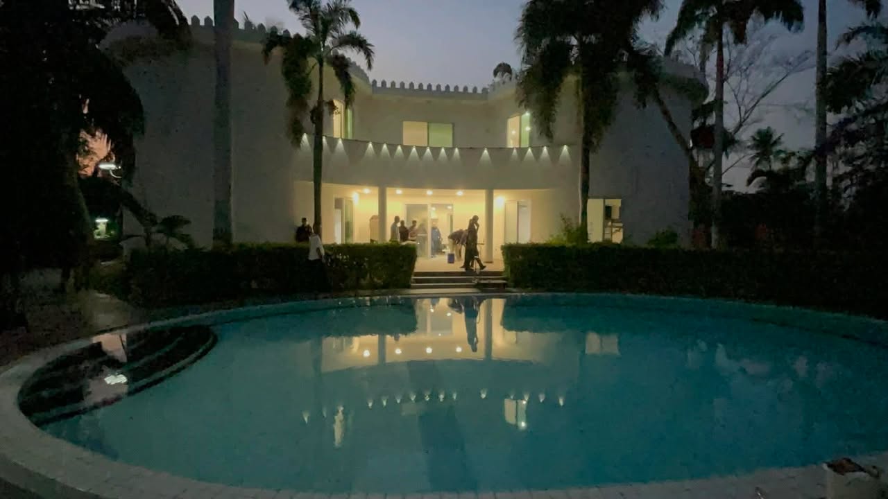 จากการตรวจค้นบ้านพักสูง 2 ชั้น สไตล์พูลวิลล่าพร้อมสระว่ายน้ำ พบชายชาวจีน 2 ราย อายุ 41 ปี และ อายุ 32 ปี อาศัยอยู่ภายใน เมื่อเจ้าหน้าที่แสดงตัวเข้าตรวจสอบ 1 ราย กระโดดหนีออกจากหน้าต่างชั้น 2 สูงราว 5 เมตร พลัดตกกระแทกพื้นจนขาหักได้รับบาดเจ็บ อีกหนึ่งรายถูกควบคุมตัวไว้ได้ ก่อนประสานหน่วยกู้ภัยนำผู้บาดเจ็บส่งรักษาที่โรงพยาบาล