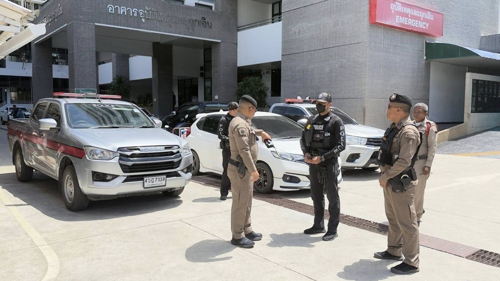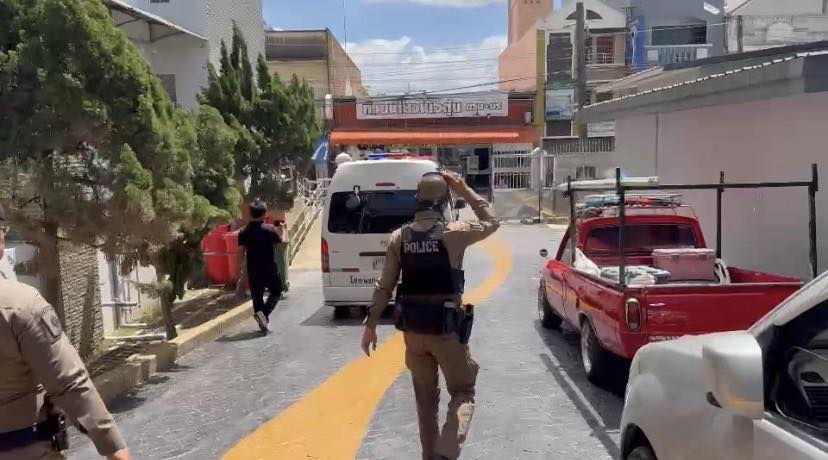 ก่อนเกิดเหตุภายในโรงเรียน ตำรวจจาก สถานีตำรวจภูธรหาดใหญ่ ได้รับแจ้งเหตุชายมีอาการคลุ้มคลั่งทำร้ายบุคคลในครอบครัว ภายในพื้นที่หมู่ 1 ตำบลพะตง อำเภอหาดใหญ่ จังหวัดสงขลา เจ้าหน้าที่สายตรวจ 2 นาย พร้อมผู้ใหญ่บ้าน เข้าตรวจสอบ พบผู้ก่อเหตุถือมีดยาวอยู่ในอาการคลุ้มคลั่ง และพยายามใช้ยุทธวิธีเข้าระงับเหตุโดยใช้ไม้ง่ามควบคุมตัว แต่ผู้ก่อเหตุใช้อาวุธมีดไล่ฟันตำรวจซึ่งสวมเสื้อเกราะป้องกัน จึงไม่ได้รับบาดเจ็บรุนแรง