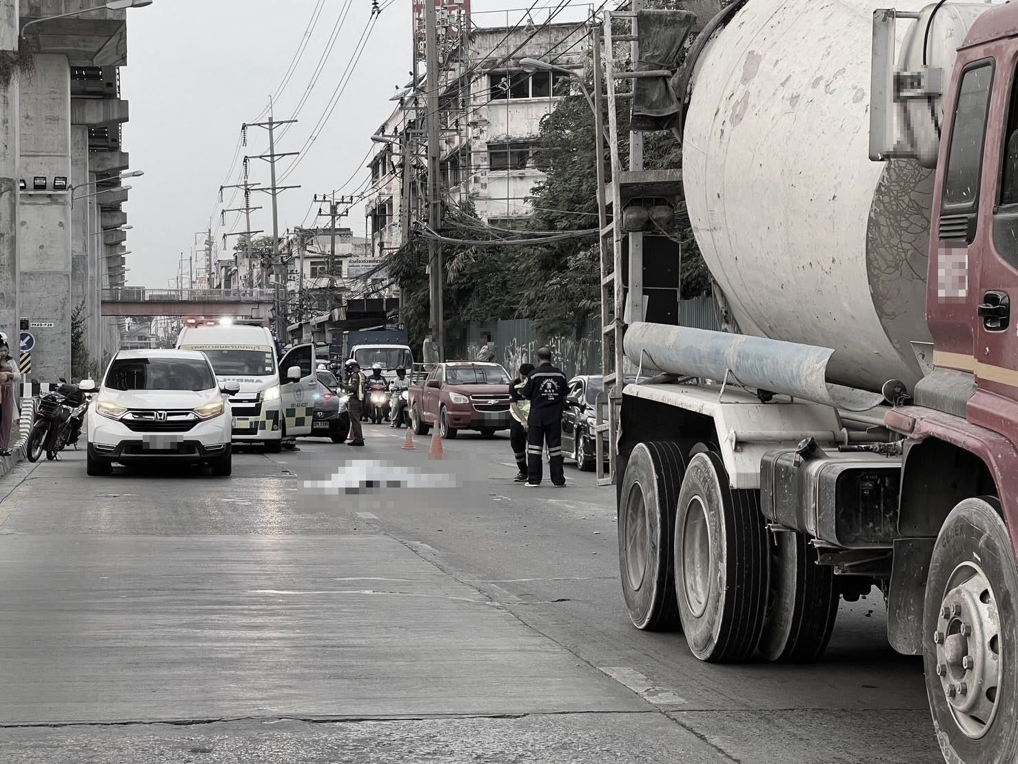 หนุ่มวัย 17 ปีขี่รถจักรยานยนต์ชนกับรถอเนกประสงค์ล้มคว่ำ รถโม่ปูนขับตามทับซ้ำ เสียชีวิตกลางถนนติวานนท์ จ.นนทบุรี