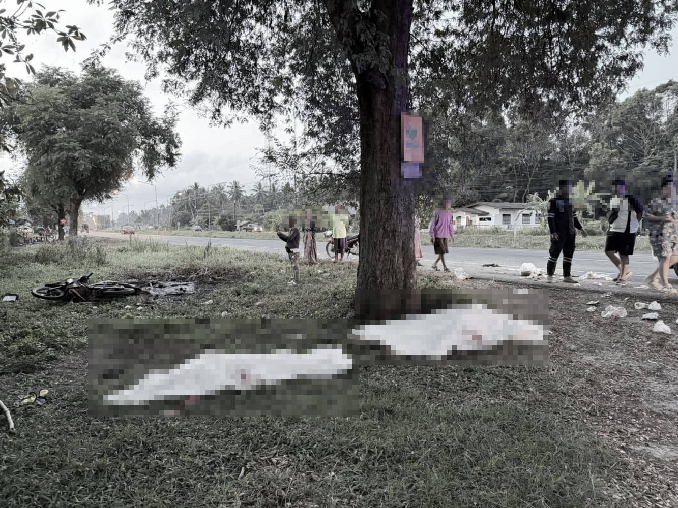 รถจักรยานยนต์พลิกคว่ำลงข้างทาง พบร่าง 3 หนุ่มน้อยเสียชีวิตใต้โคนต้นมะขามริมถนน จ.นครศรีธรรมราช
