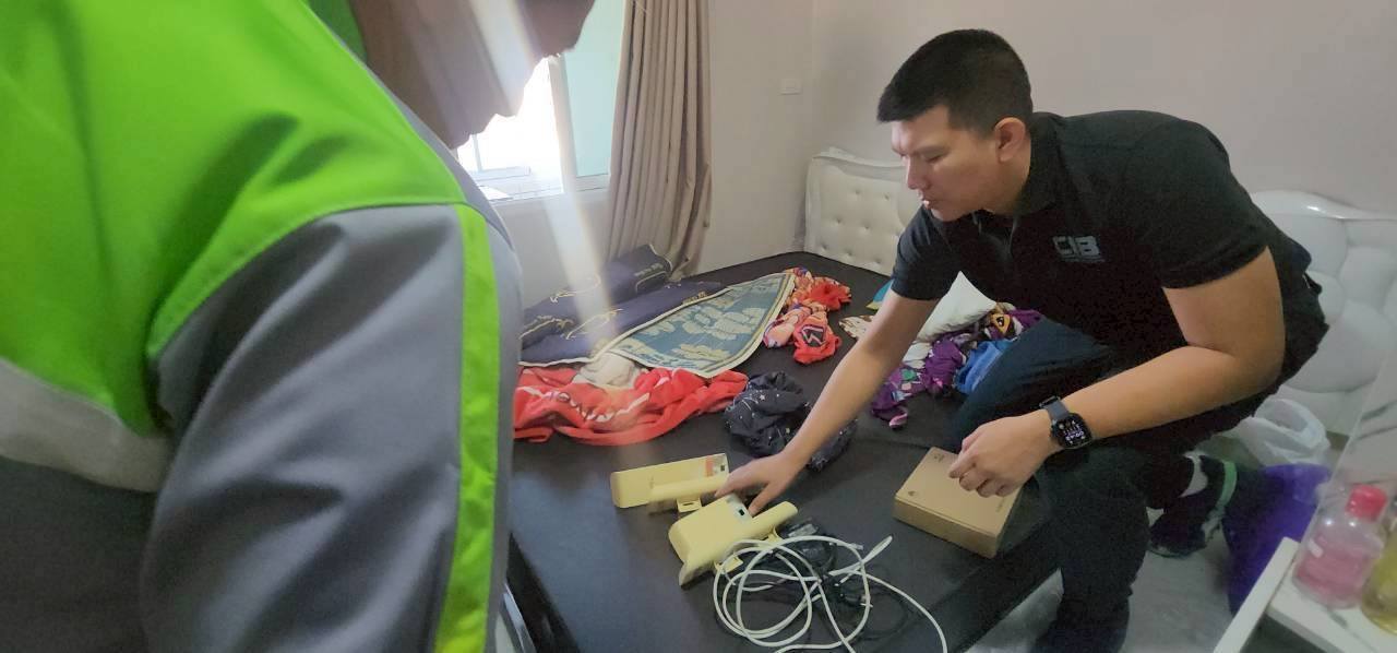 ทั้งนี้ในห้องพักดังกล่าว สภาพห้องบางส่วนไม่มีการอยู่อาศัย แต่พบการติดตั้งอุปกรณ์เครือข่ายและอุปกรณ์คอมพิวเตอร์ที่มีลักษณะดัดแปลงเพื่อทำหน้าที่เป็น “จุดรวม–กระจายสัญญาณ” จำนวนหลายชิ้น รวมถึงการตั้งค่าระบบ VPN และอุปกรณ์เชื่อมต่อที่มีพฤติการณ์มุ่งส่งผ่านทราฟฟิกซึ่งถูกหันทิศการส่งสัญญาณไปยังประเทศเมียนมา