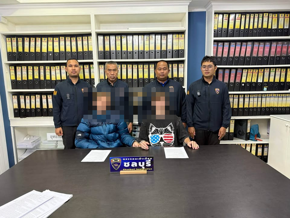 เมื่อเวลา 18.30 น. วันที่ 17 กุมภาพันธ์ 2569 พ.ต.ต.กิตติภัทร หงษ์ชูเวช สว.ตม.จว.ชลบุรี พร้อมกำลังชุดจับกุม ได้รับแจ้งเบาะแสว่ามีผู้ต้องหาชาวรัสเซีย 2 ราย คือ นายเซ(นามสมมุติ) อายุ 25 ปี และ นายวลา (นามสมมุติ) อายุ 20 ปี ซึ่งตกเป็นผู้ต้องหาตามหมายจับ ศาลจังหวัดพัทยา ในข้อหา “ร่วมกันลักทรัพย์ผู้อื่นในเวลากลางคืน โดยใช้ยานพาหนะเพื่อสะดวกแก่การกระทำความผิด” หลบซ่อนตัวอยู่ภายในหมู่บ้านแห่งหนึ่ง พื้นที่ ม.5 ต.หนองปรือ อ.บางละมุง จ.ชลบุรี