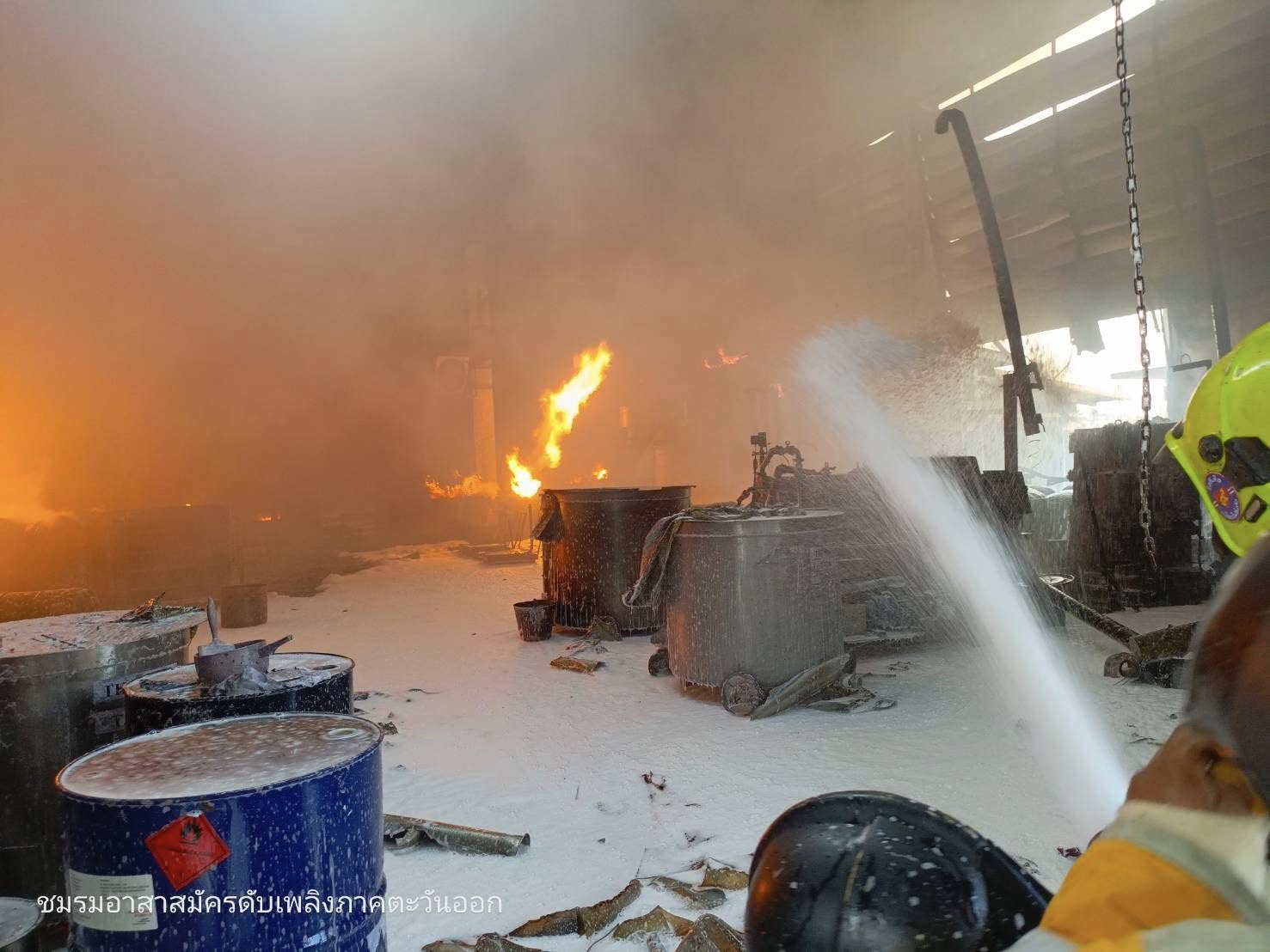 เมื่อเวลา 15.20 น. วันที่ 18 กุมภาพันธ์ 2569 เจ้าหน้าที่ตำรวจ สภ.พานทอง จ.ชลบุรี พร้อมด้วยเจ้าหน้าที่ดับเพลิงหลายพื้นที่กว่า 10 คัน เร่งรัดเข้าที่เกิดเหตุโรงงาน พื้นที่หมู่ 1 ตำบลพานทอง อำเภอพานทอง จังหวัดชลบุรี หลังรับแจ้งว่ามีเหตุเพลิงกำลังโหมลุกไหม้อย่างรุนแรงภายในโกดังผสมสี เมื่อไปถึงที่เกิดเหตุพบไฟกำลังลุกไหม้บริเวณอาคารผสมสี ภายในมีปี๊บบรรจุสีจำนวนมาก มีเสียงระเบิดเป็นระยะ
