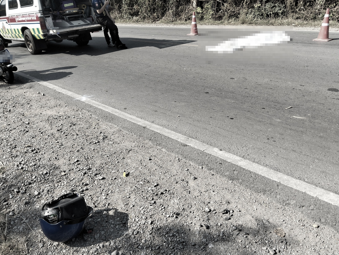 ที่เกิดเหตุ พบรถจักรยานยนต์ ยามาฮ่า สีฟ้า ลักษณะชนกับ รถกระบะ อีซูซุ สีเทา ป้ายทะเบียน นครสวรรค์ ใกล้กันพบร่างของผู้เสียชีวิต 1 ราย เป็นผู้ชายไทย อายุ 56 ปี