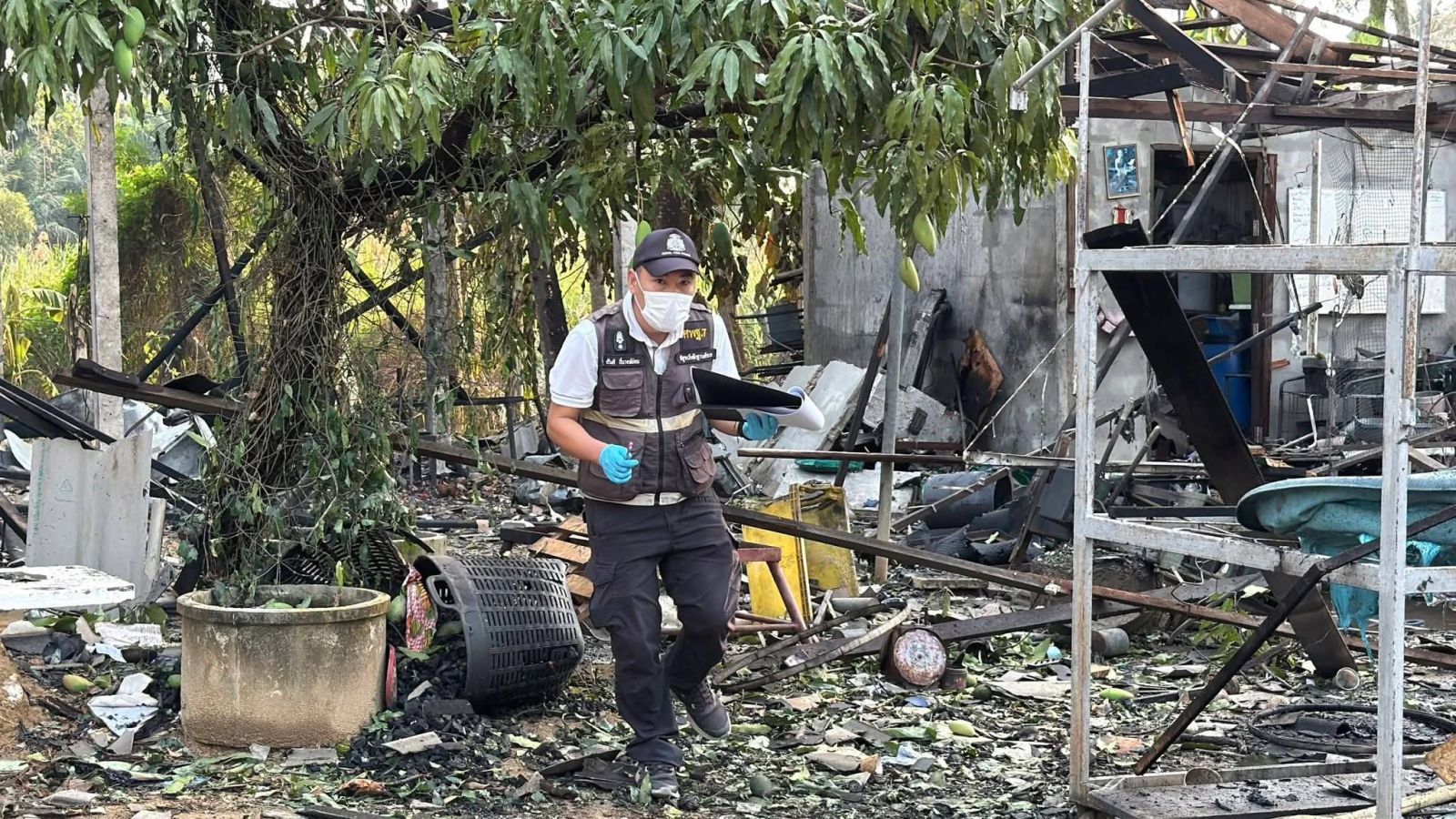 โรงผลิตพลุงานศพระเบิด บ้านพังทั้งหลัง เจ้าของถูกไฟลวกทั้งตัวเจ็บสาหัส ที่บ้านลาด จ.เพชรบุรี