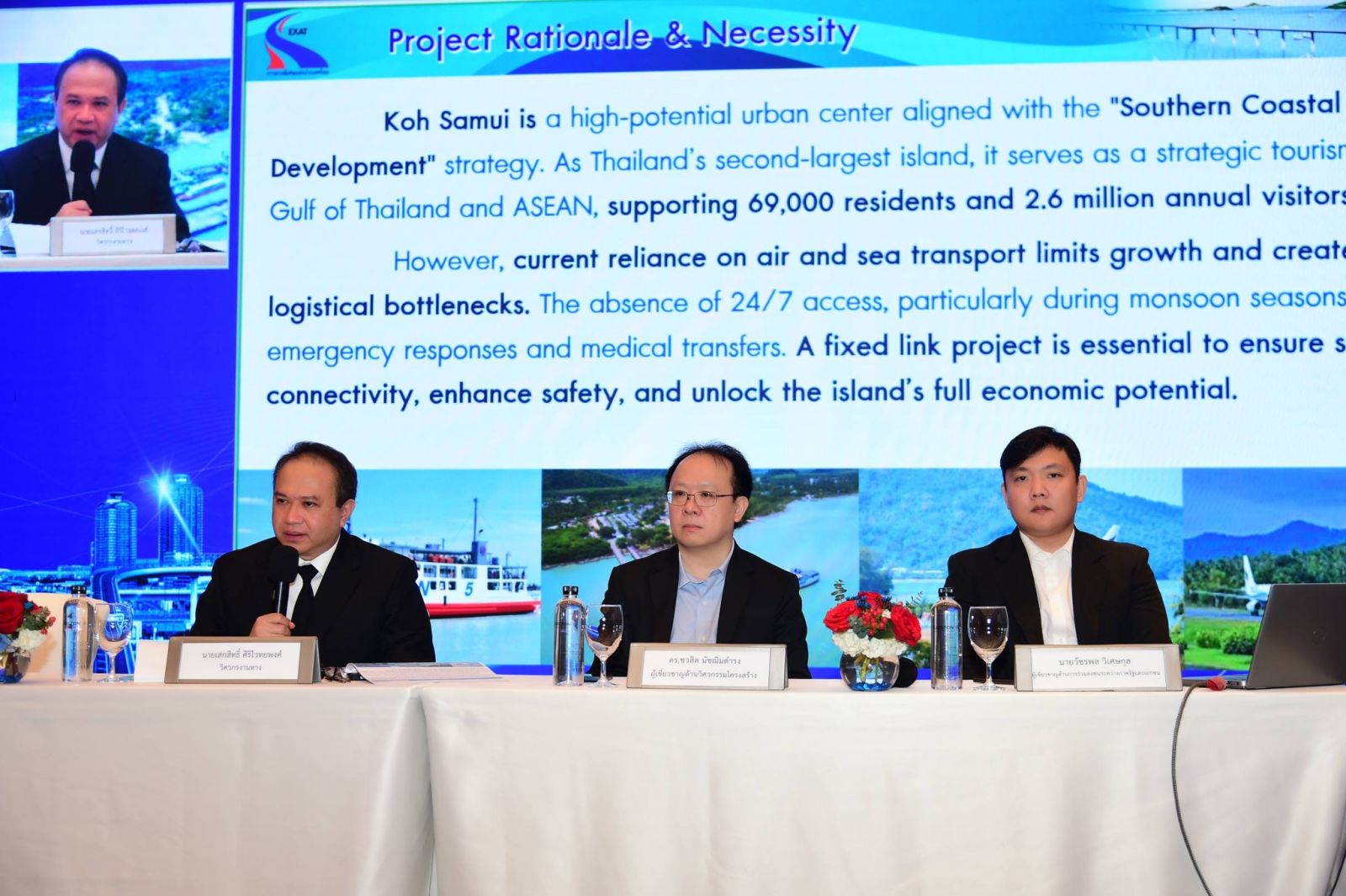 การทางพิเศษฯ เปิดการสัมมนารับฟังความคิดเห็นของภาคเอกชน (Opinion hearing) งานศึกษาความเหมาะสมทางด้านวิศวกรรม เศรษฐกิจ การเงิน และผลกระทบสิ่งแวดล้อม โครงการทางพิเศษเชื่อมเกาะสมุย