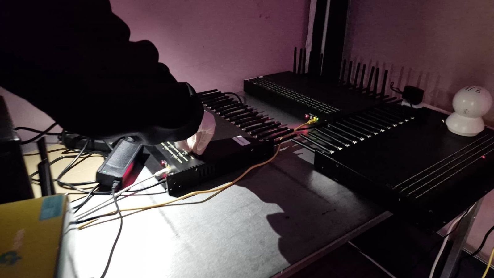 ผลการตรวจค้นพบอุปกรณ์ “ซิมบ็อกซ์ (SIM Box)” จำนวน 8 เครื่อง ซุกซ่อนอยู่ภายในห้องเช่า 2 ห้อง พร้อมของกลางประกอบด้วย เราเตอร์ WiFi และ อุปกรณ์คอมพิวเตอร์ควบคุมระบบ