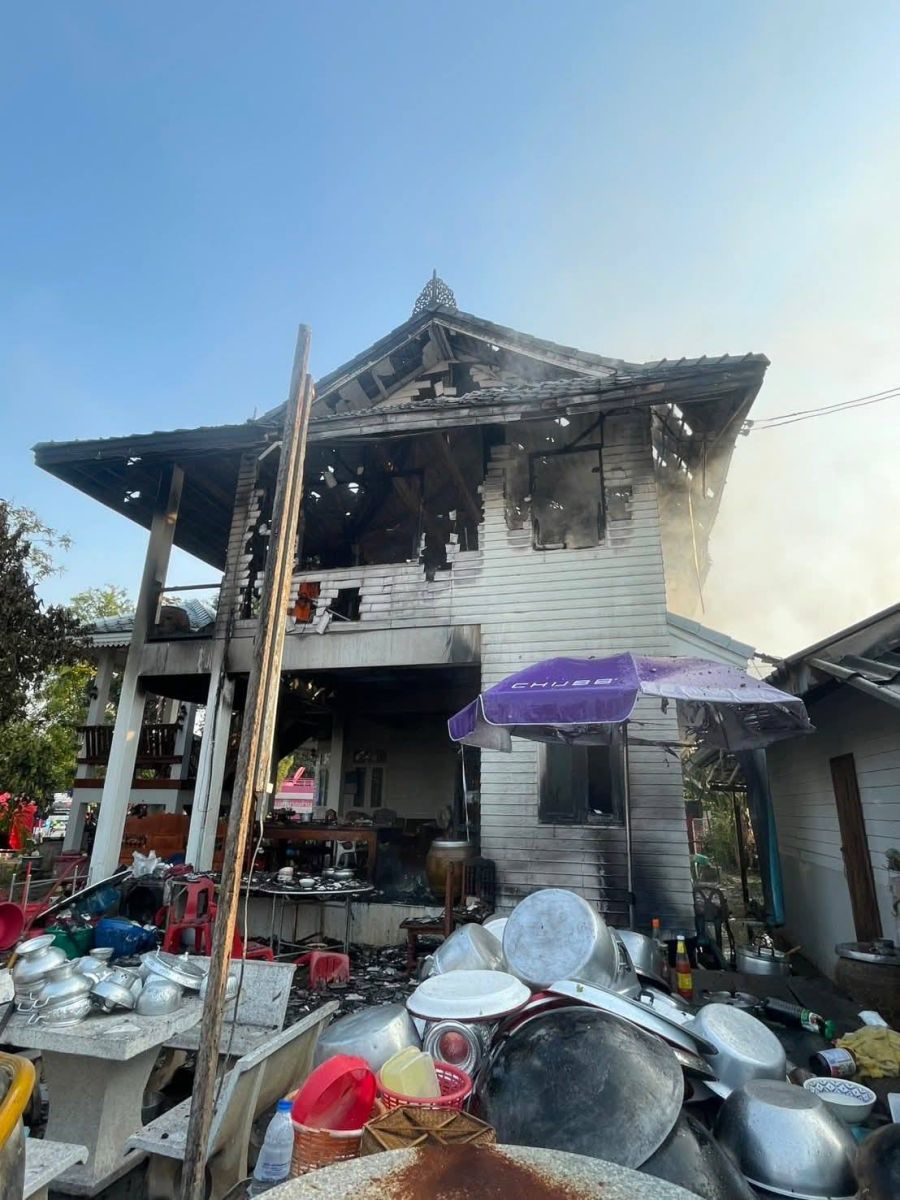 เพลิงไหม้บ้านไม้สัก เสียหายวอดทั้งชั้น ในพื้นที่อำเภอโพธาราม จังหวัดราชบุรี