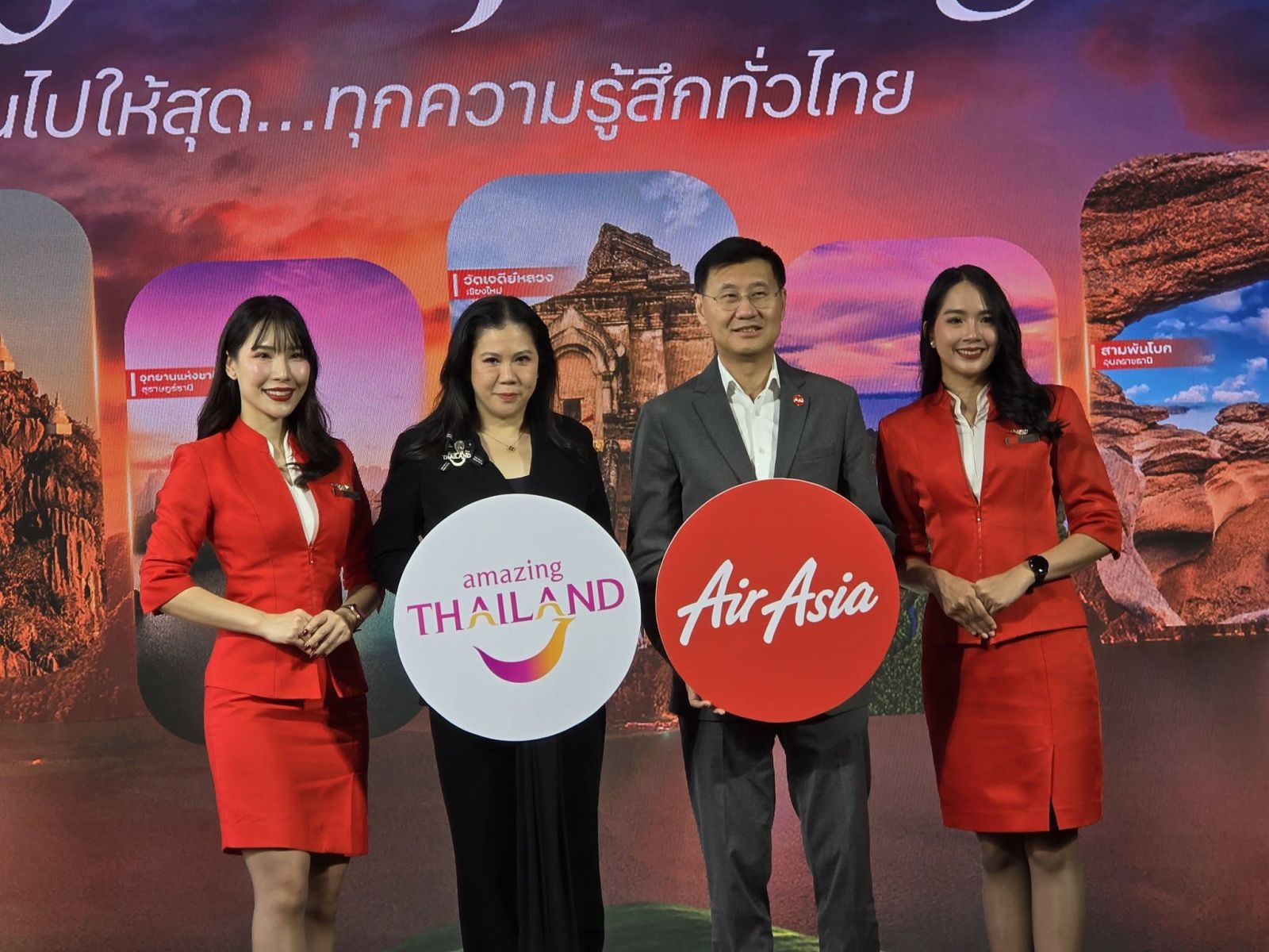 นางสาว ฐาปนีย์ เกียรติไพบูลย์ ผู้ว่าการ ททท. เปิดเผยว่า ความร่วมมือกับสายการบินไทยแอร์เอเชียครั้งนี้ ซึ่งเป็นการต่อยอดแคมเปญโฆษณาของ ททท. “Feel all the Feelings” ที่ได้เปิดตัวร่วมกับ ลิซ่า - ลลิษา มโนบาล ในฐานะ Amazing Thailand Ambassador ไปเมื่อต้นเดือนมกราคม 2569 เพื่อจุดประกายแรงบันดาลใจให้เกิดการเดินทางจริง ทำให้ประเทศไทยเป็นจุดหมายปลายทางคุณภาพที่เดินทางได้ง่ายที่สุด สะดวกที่สุด และเข้าถึงได้มากที่สุดในมุมของนักท่องเที่ยวทั้งชาวไทยและชาวต่างชาติ ไทยแอร์เอเชีย จึงเป็นกลไกสำคัญในการเพิ่มความสะดวกและการเชื่อมโยงการท่องเที่ยวไทย ให้คล่องตัวยิ่งขึ้น ด้วยเครือข่ายบินภายในประเทศ 42 เส้นทาง ครอบคลุม 25 จุดหมายทั่วทุกภูมิภาค ถือเป็นก้าวสำคัญของการผนึกพลังภาครัฐและเอกชน เพื่อขับเคลื่อนเศรษฐกิจท่องเที่ยวอย่างเป็นรูปธรรม