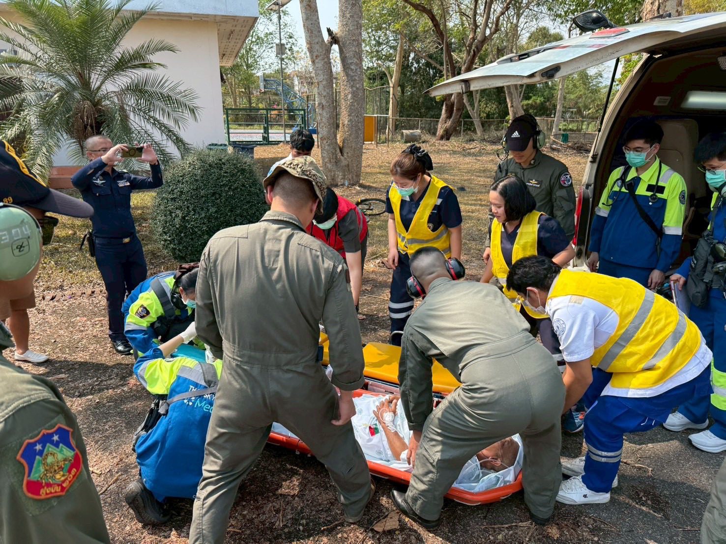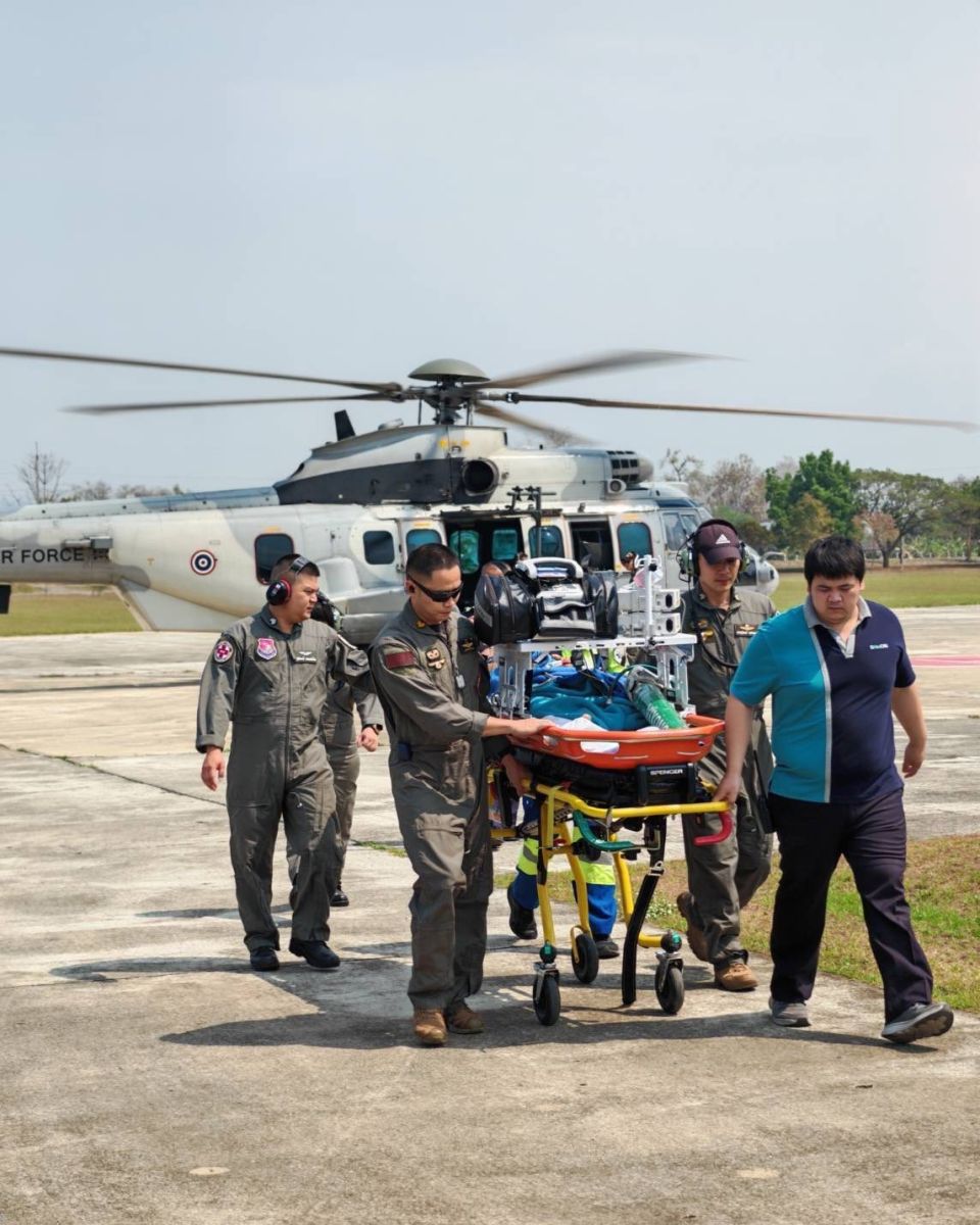 ด้วยระยะทางที่ห่างไกล หากเดินทางด้วยรถยนต์อาจใช้เวลานานเกินไป ทีมแพทย์ประเมินแล้วว่าผู้ป่วยสามารถลำเลียงทางอากาศได้ กองทัพอากาศจึงไม่รอช้า สั่งการให้ หน่วยบิน 2033 นำเฮลิคอปเตอร์แบบ H225M จากกองบิน 41 ขึ้นบินปฏิบัติภารกิจรับ-ส่งผู้ป่วยทันที