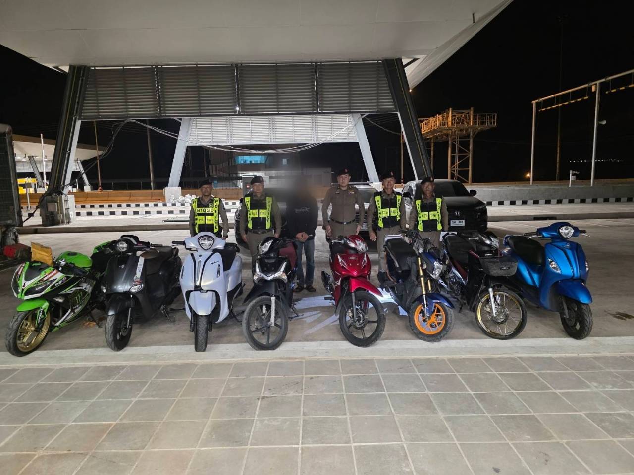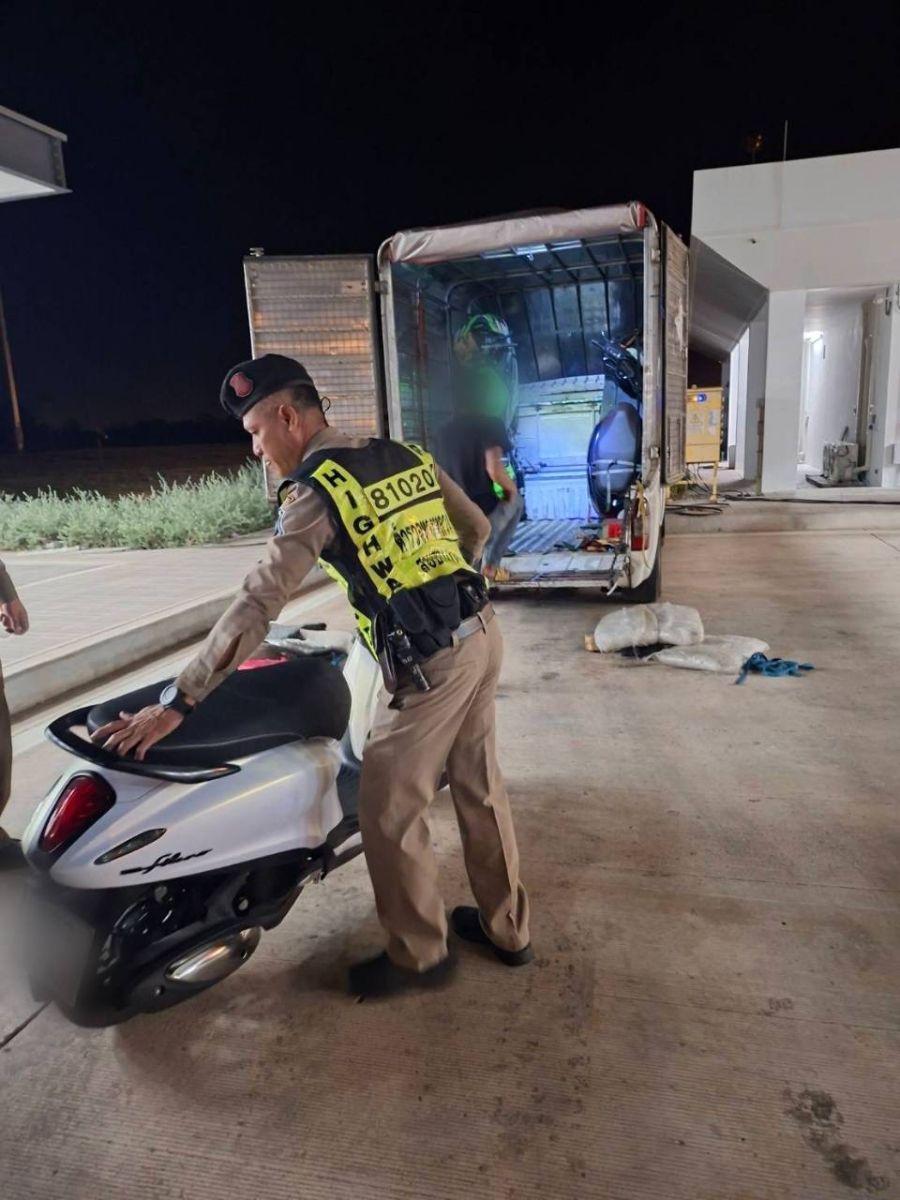 กองบังคับการตำรวจทางหลวง โดยพล.ต.ต.พรศักดิ์ เลารุจิราลัย ผบก.ทล. พร้อมกำลังเจ้าหน้าที่ตำรวจ ส.ทล.3 กก.8 บก.ทล. ร่วมกันจับกุมผู้ต้องหา นาย นิด (นามสมมุติ) อายุ 29 ปี พร้อมตรวจยึดของกลางเพื่อทำการตรวจสอบ รถจักรยานยนต์ จำนวน 8 คัน อยู่ภายในรถยนต์กระบะ ยี่ห้อ ISUZU สี ชมพู,ขาว รุ่น จังหวัดกรุงเทพมหานคร