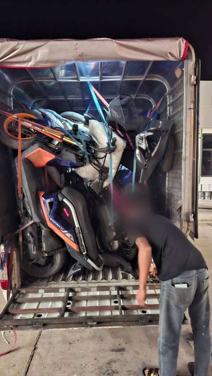 รวบกระบะตู้ทึบ ขน รถจยย.ต้องสงสัย 8 คัน มุ่งหน้าชายแดน คนขับรับจ้างผ่านไลน์ สุดท้ายโดนบล็อกหนี ลอยแพไม่จ่ายเงิน