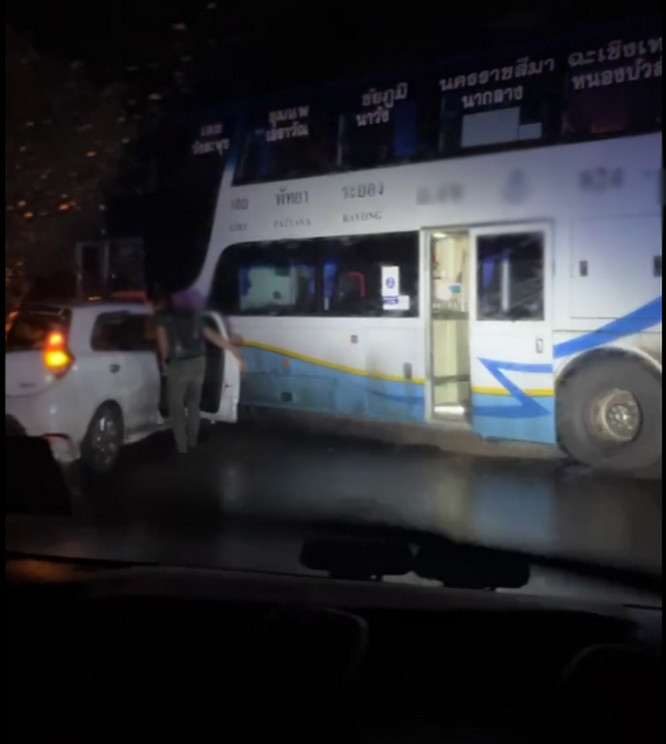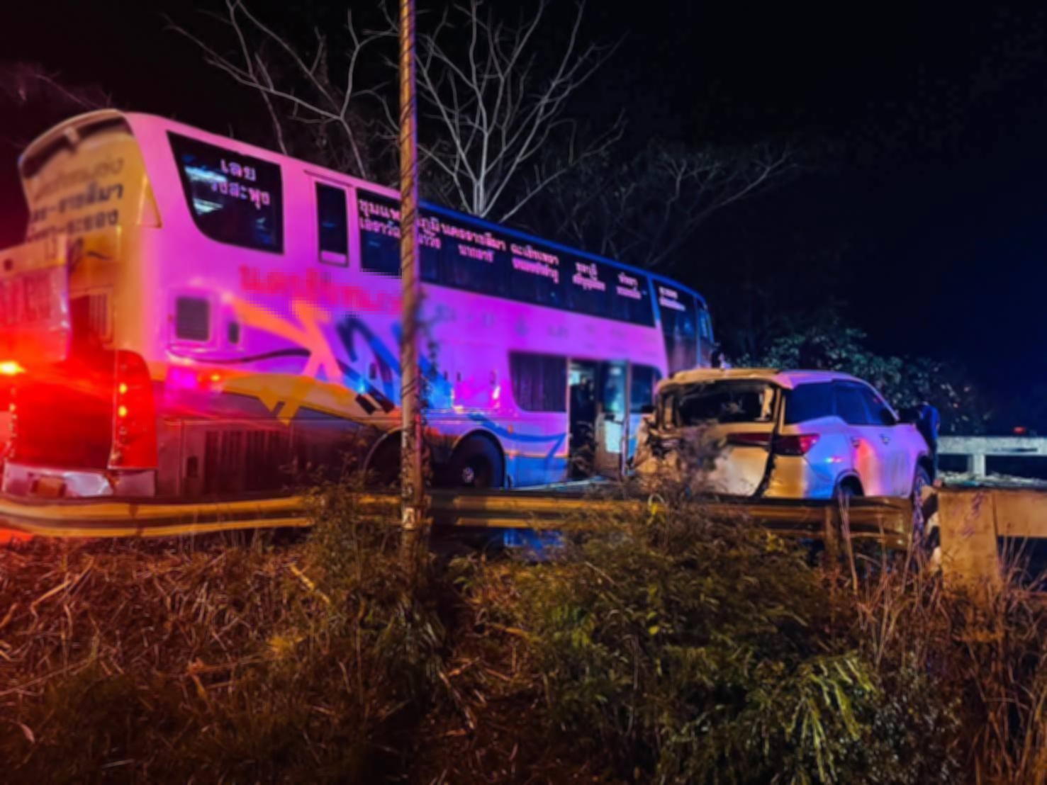 ที่เกิดเหตุ พบรถทัวร์ สายเลย - พัทยา - ระยอง สีฟ้า-ขาว ลักษณะหน้ารถชนเข้ากับขอบปูนราวสะพาน พบผู้เสียชีวิตชาย 1 ราย เป็นคนขับรถทัวร์ติดค้างในยานพาหนะ เจ้าหน้าที่ต้องใช้เครื่องมือตัดถ่างงัดรถ เพื่อนำร่างออกมา