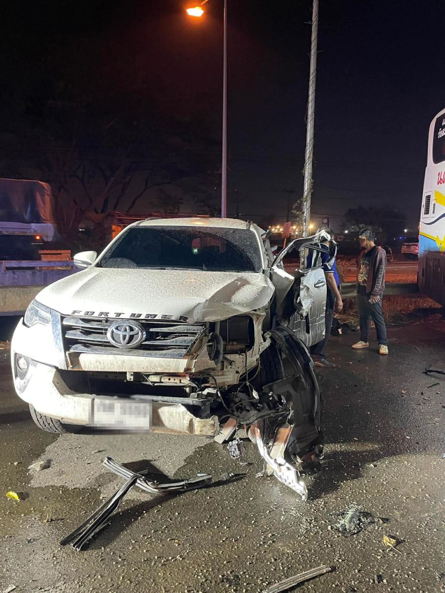 และพบรถยนต์ที่ประสบเหตุอีก รถนั่งส่วนบุคคล เอ็มจี 3 สีขาว หน้ารถพังเสียหาย, รถอเนกประสงค์ โตโยต้า ฟอร์จูเนอร์ สีขาว สภาพเสียหายทั้งคัน, รถกระบะ อีซูซุ ดีแม็กซ์ สีขาว ลักษณพลิกหงายท้องในร่องกลางถนน และรถพ่วง อีก 1 คันสภาพท้ายรถพังเสียหาย