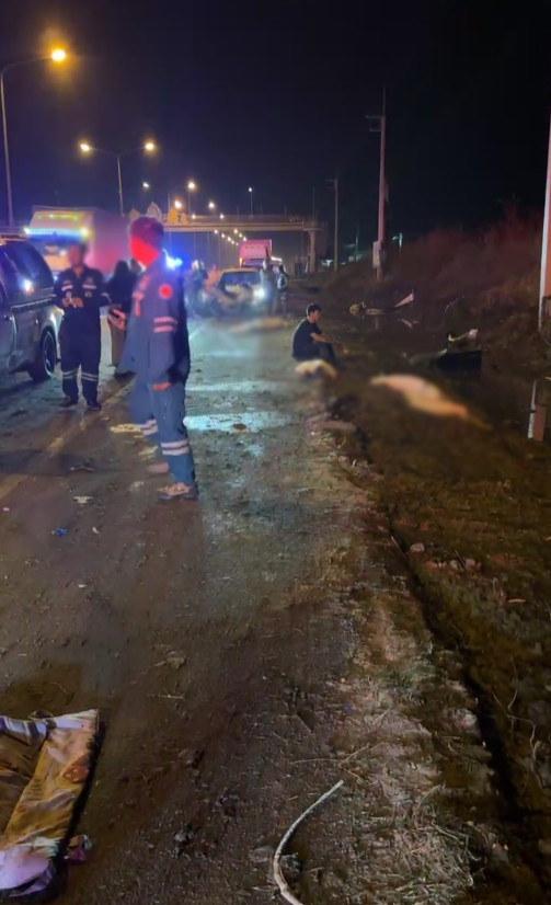 ที่เกิดเหตุ พบรถนั่งส่วนบุคคล สีเทา ลักษณะพลิกคว่ำตกอยู่ในร่องน้ำข้างทาง สภาพรถพังเสียหายทั้งคัน ตรวจสอบพบว่า มีผู้เสียชีวิต 4 ราย และมีบาดเจ็บสาหัสอีก 2 ราย นำส่ง รพ.ใกล้เคียง ขณะนี้อยู่ระหว่างตรวจสอบรายละเอียด พื้นที่ สภ.บางปะกง