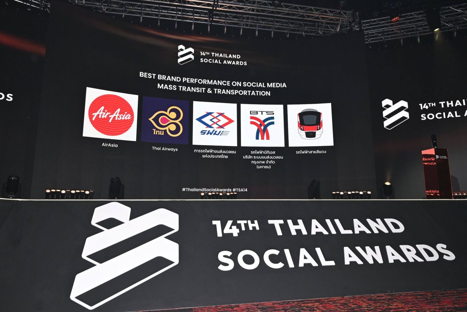 วันที่ 25 กุมภาพันธ์ 2569 นางสาวจิรฐา วัฒนประดิษฐ์ ผู้อำนวยการสำนักสื่อสารองค์กร การรถไฟฟ้าขนส่งมวลชนแห่งประเทศไทย (รฟม.) เป็นผู้แทน รฟม. เข้ารับรางวัล “FINALIST” 1 ใน 5 หน่วยงานที่ถูกคัดเลือกให้เป็น 5 อันดับสุดท้าย (Top 5) ในกลุ่มรางวัล Best Brand Performance On Social Media สาขา Mass transit & Transportation (กลุ่มธุรกิจขนส่งสาธารณะ) จากงาน “Thailand Social Awards ครั้งที่ 14” งานประกาศรางวัลโซเชียลที่ใหญ่ที่สุดของประเทศ ซึ่งจัดขึ้นโดย บริษัท ไวซ์ไซท์ (ประเทศไทย) จำกัด ณ ICONSIAM HALL, ICONSIAM