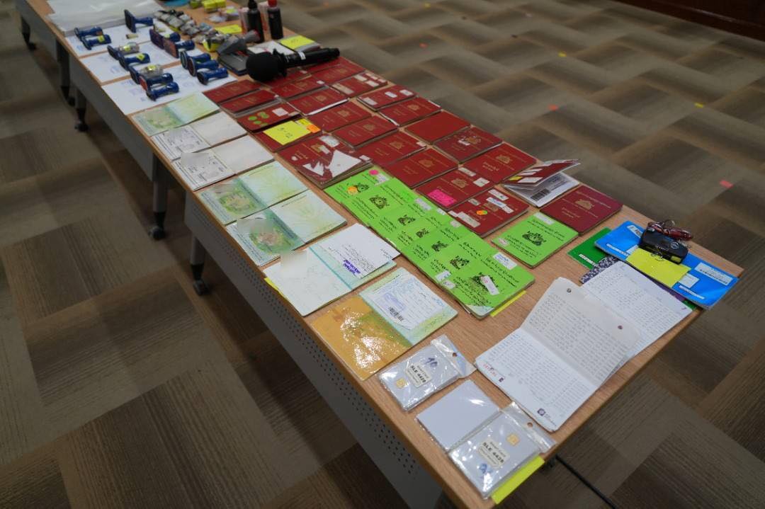 จากการลงพื้นที่สืบสวนนานกว่า 4 เดือน จึงทราบว่าบ้านเช่าทั้ง 2 หลัง ในพื้นที่ ต.บางรักพัฒนา อ.บางบัวทอง จ.นนทบุรี ซึ่งห่างกันประมาณ 2 กม. จนท.ชุดจับกุม จึงได้วางแผนเฝ้าสังเกตบ้านทั้ง 2 หลัง จนกระทั่งเมื่อวันที่ 20 ก.พ.2569 จนท.ชุดจับกุม พบ นายมอ (นามสมมุติ) ออกมาจากบ้านพักหลังหนึ่ง จนท.ชุดจับกุม จึงได้แสดงตัวเข้าจับกุมแสดงหมายจับศาลจังหวัดสงขลา นายมอ (นามสมมุติ) ยอมรับว่าเป็นบุคคลเดียวกันกับหมายจับ และนำ จนท.ชุดจับกุม ตรวจค้นภายในบ้านพักดังกล่าว พบ อุปกรณ์การทำหนังสือเดินทาง จำนวน 66 รายการ อาทิ เช่น เครื่องคอมพิวเตอร์ โน้ตบุ๊ก จำนวน 2 เครื่อง, เครื่องพิมพ์, เครื่องเคลือบแผ่นลามิเนต, หนังสือเดินทางเมียนมา จำนวน 36 เล่ม, ตรายางประทับของ ตม.ต่างๆ ทั้งประเทศไทย และเมียนมา จำนวน 16 อัน พร้อมทั้งตรวจยึด รถยนต์กระบะ จำนวน 1 คัน, รถจักรยานยนต์, สมุดบัญชีธนาคาร จำนวน 3 เล่ม พบเงินหมุนเวียนมากกว่า 1 ล้านบาท รวมทรัพย์สินทั้งหมดกว่า 2 ล้านบาท
