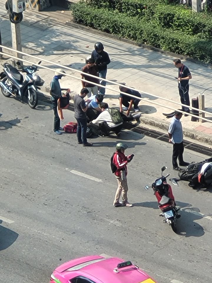 หน้าวิทยาลัยเทคโนโลยีดอนบอสโก รถเก๋งชนกับรถจยย. มีผู้บาดเจ็บ