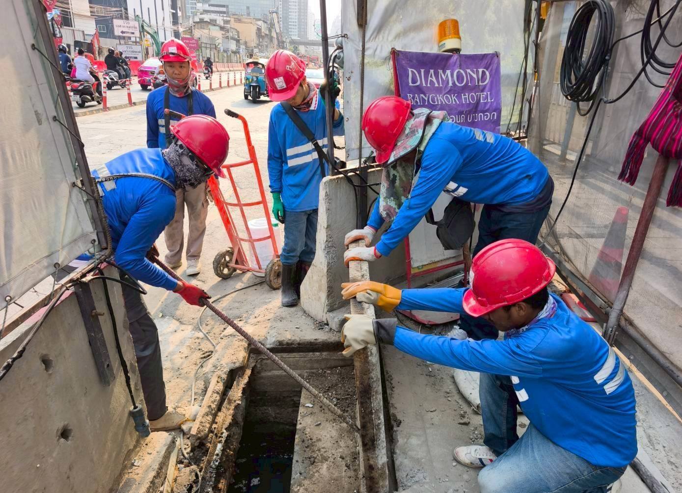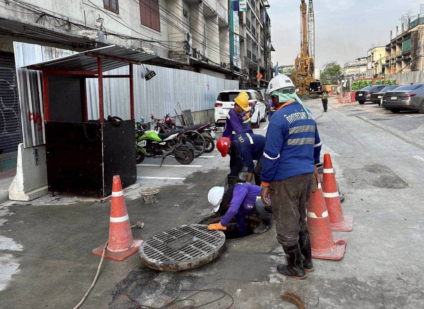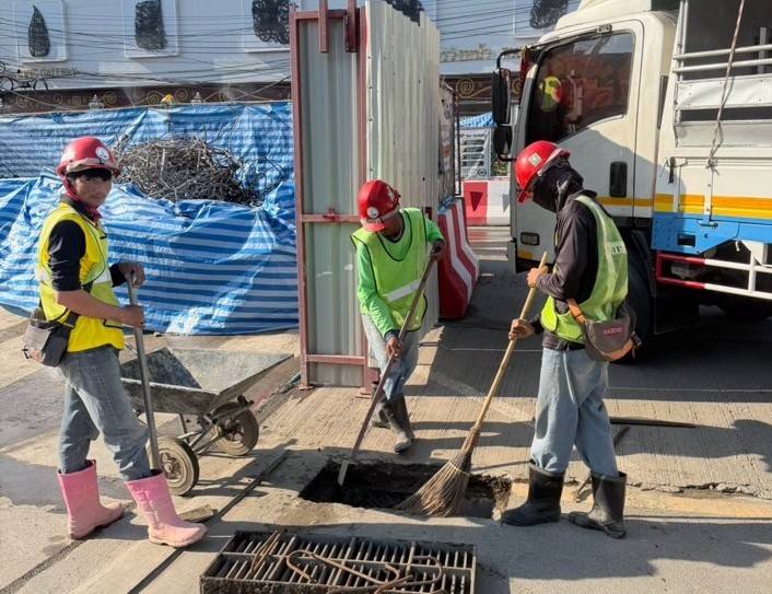 การรถไฟฟ้าขนส่งมวลชนแห่งประเทศไทย (รฟม.) ในฐานะหน่วยงานที่รับผิดชอบดำเนินการก่อสร้างโครงการรถไฟฟ้าสายสีส้ม ช่วงบางขุนนนท์ – ศูนย์วัฒนธรรมแห่งประเทศไทย ได้ติดตามและกำชับ ผู้รับจ้างก่อสร้างงานโยธา ให้ดำเนินการขุดลอกท่อระบายน้ำ และบ่อพัก ตลอดแนวเส้นทางโครงการฯ อย่างต่อเนื่อง เพื่อป้องกันเศษวัสดุอุดตันในแนวก่อสร้างรถไฟฟ้า และเพิ่มประสิทธิภาพการระบายน้ำให้ดียิ่งขึ้น รวมถึงให้ดูแลความสะอาดพื้นที่ก่อสร้างโดยจัดเก็บวัสดุก่อสร้าง และขยะมูลฝอยให้เป็นระเบียบ จัดหาผ้าใบคลุมไว้ให้มิดชิดป้องกันไม่ให้ดินตะกอนและเศษวัสดุจากการก่อสร้างไปอุดตันท่อระบายน้ำ ซึ่งการดำเนินการดังกล่าว เป็นไปตามนโยบายของกระทรวงคมนาคม และนโยบายด้านความรับผิดชอบต่อสังคมและสิ่งแวดล้อมของ รฟม. ที่มุ่งเน้นการให้ความสำคัญกับประชาชนและชุมชนตามแนวสายทาง ซึ่งอาจได้รับผลกระทบจากการดำเนินงานก่อสร้างของโครงการฯ